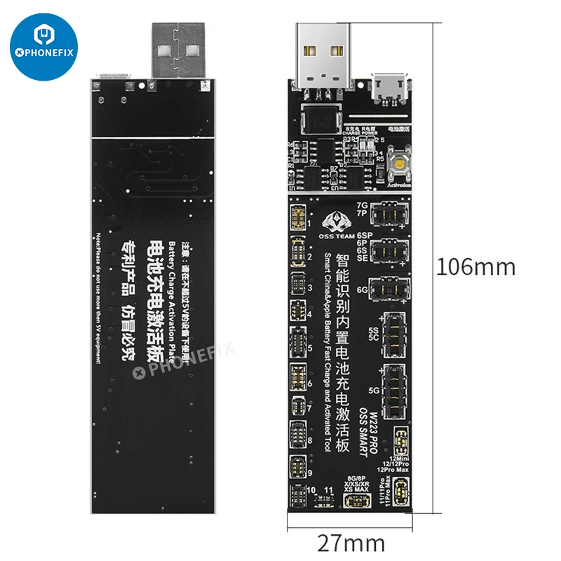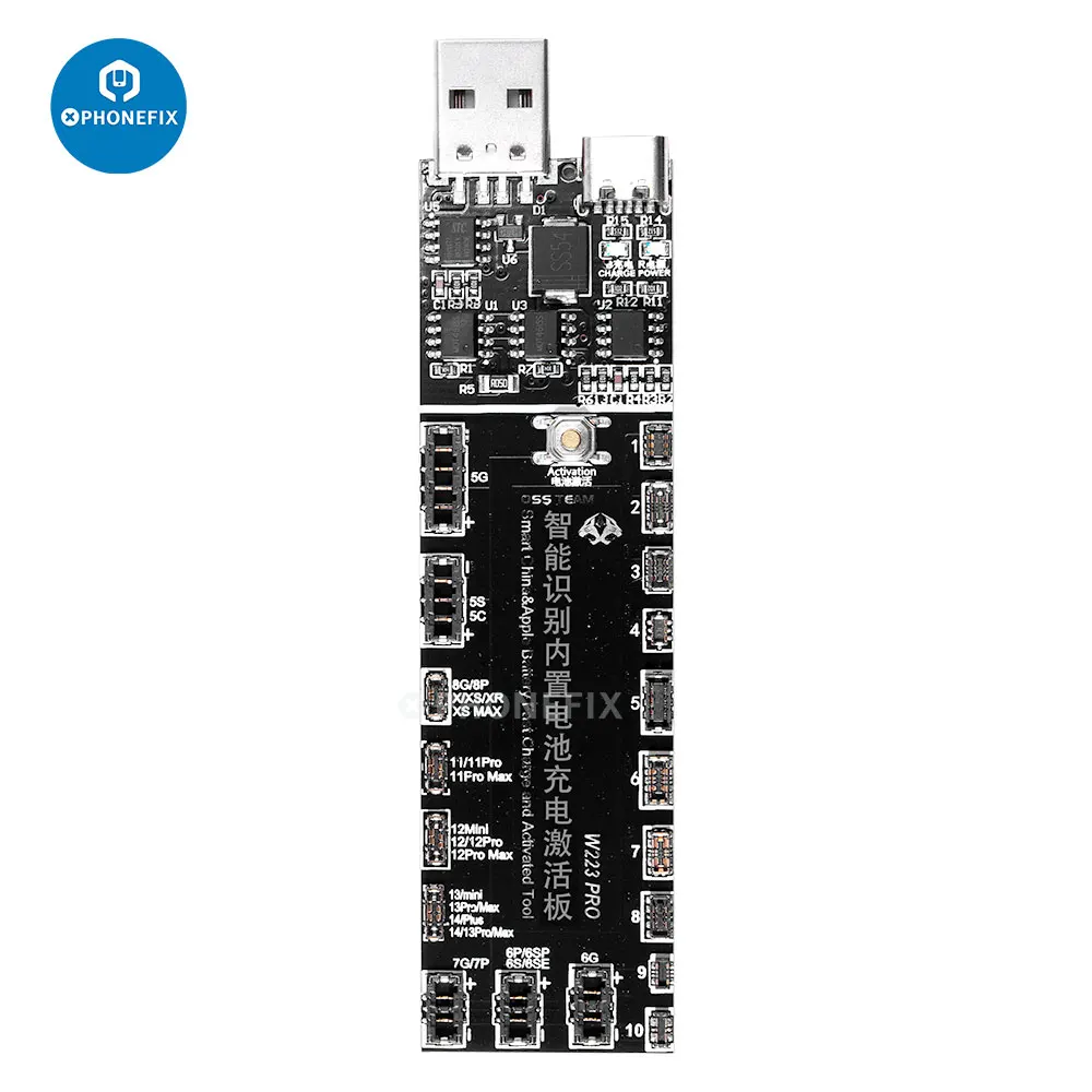 OSS W223 Pro V6 battery activation board for iPhone 5-12 Pro Max, Samsung, Xiaomi, Huawei, ect. W223 Pro V6 battery charging activation board for iPhone Android Phone repair.