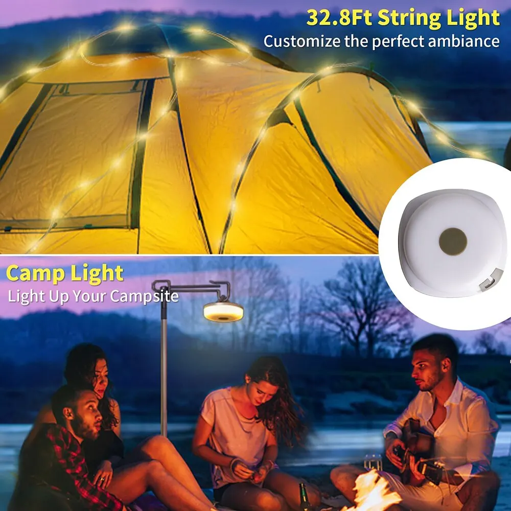 【Upgraded String Lights for Camping】Experience the ultimate lighting versatility with this 2 in 1 camping lights string that combines a camping lantern and camping string light into a single, compact unit. The 32.8ft long outdoor string light can illuminate your tent, create a cozy atmosphere, and light up the outdoor adventures. Great summer holiday camping essentials.