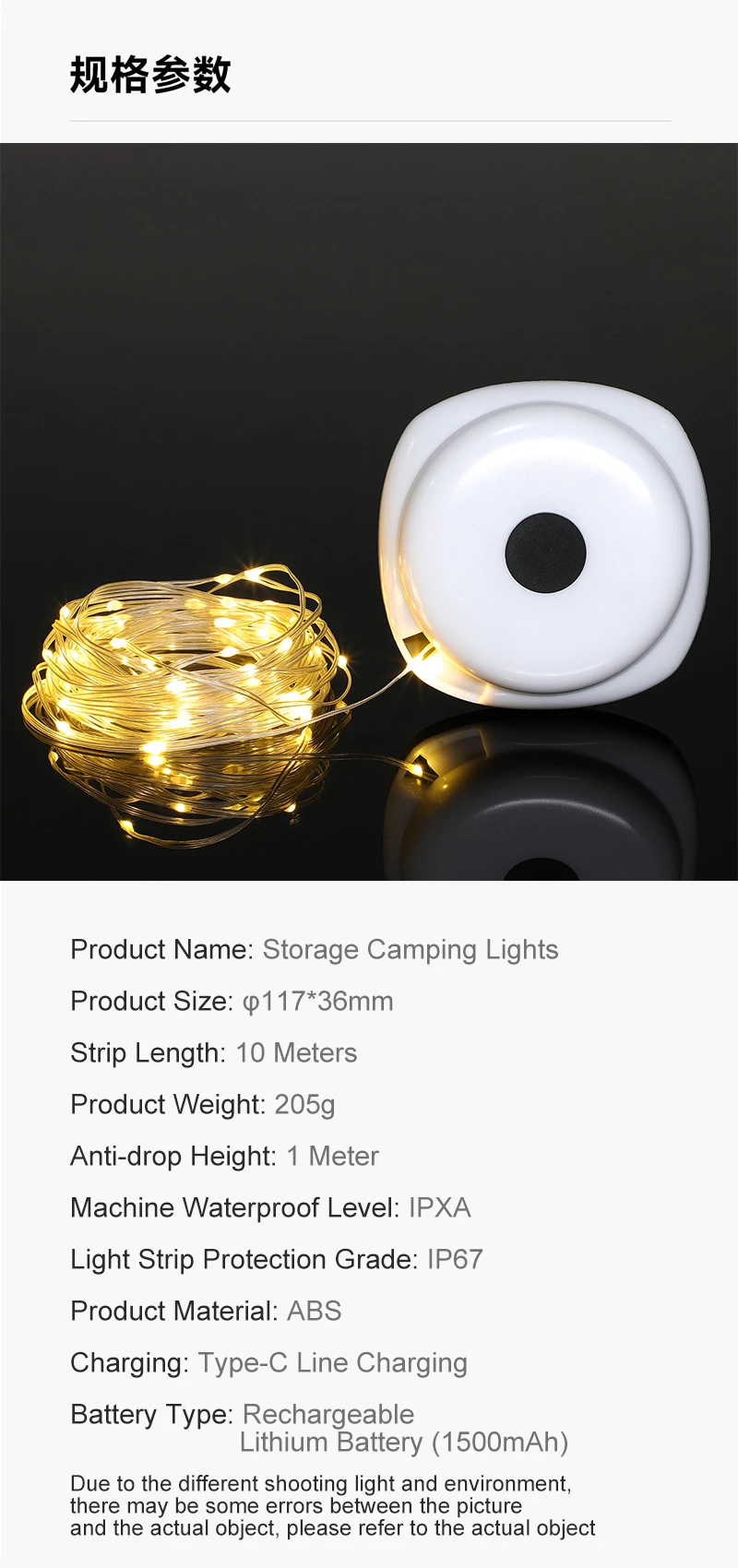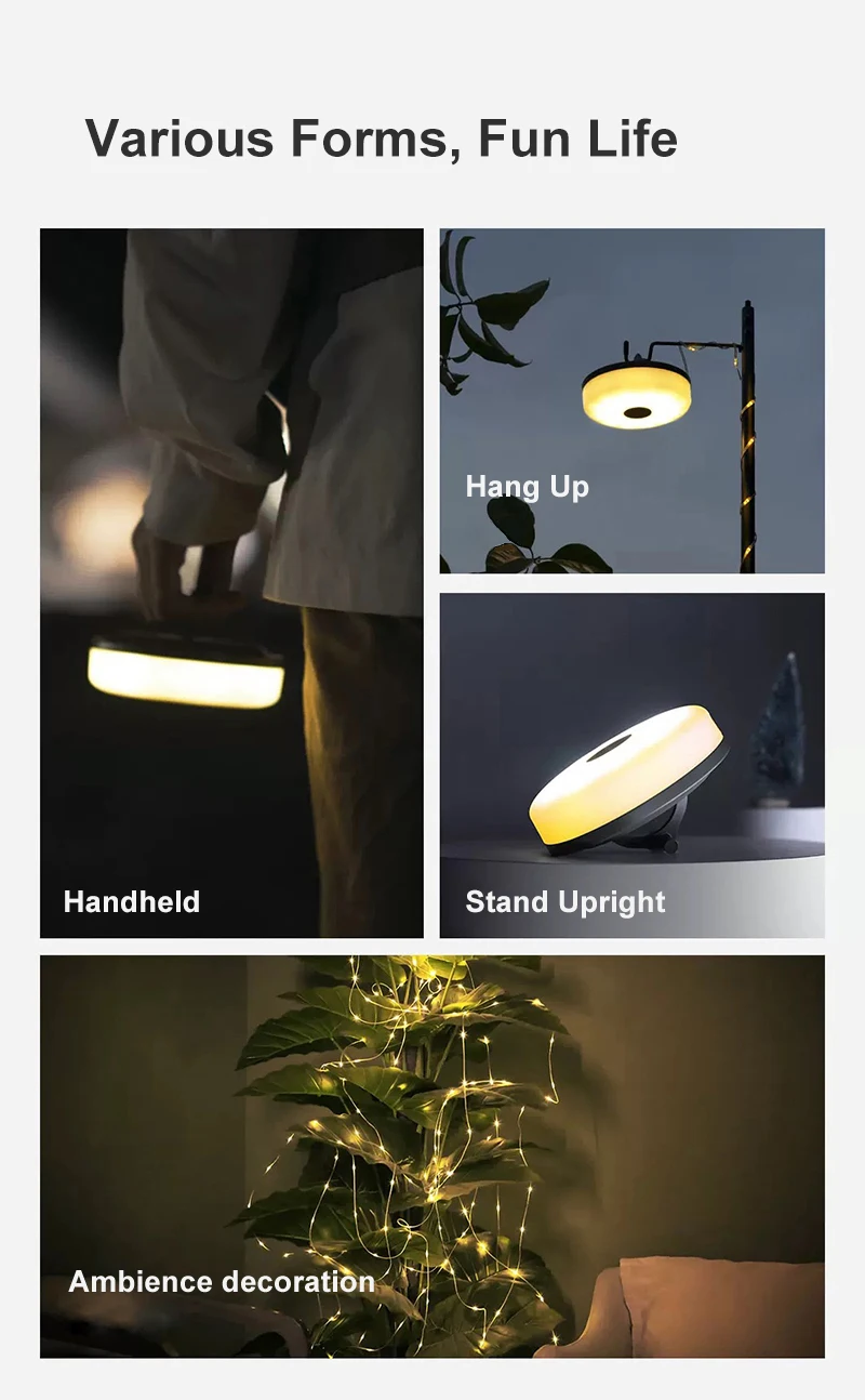 【Portable Camping String Lights】The camping light & lantern is ultra-portable, weighing only 204g and featuring a compact design. The fairy string lights function as both a handheld camping lights for illuminating paths and a versatile hanging light for tents, tree branches, and other areas, serving as a night light.