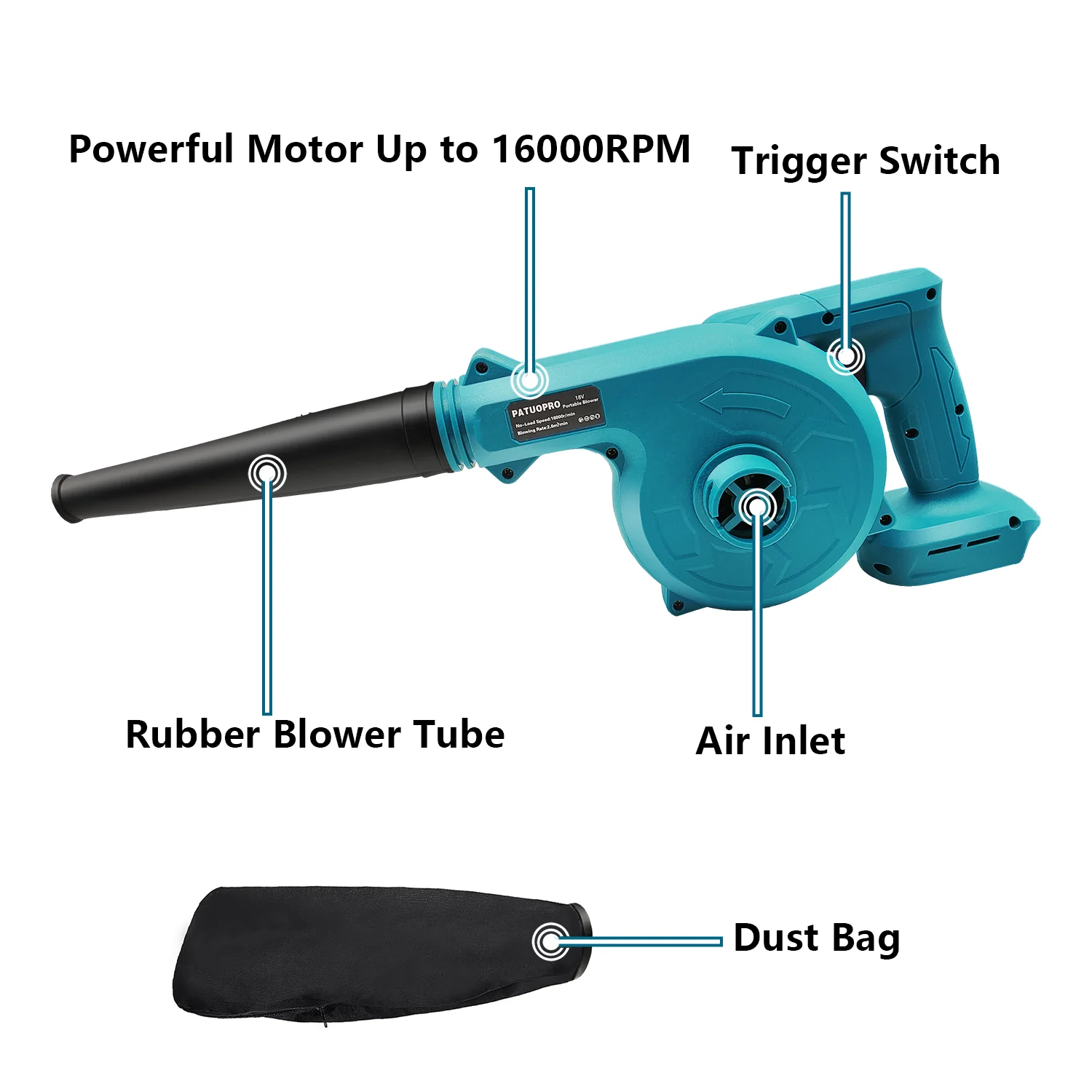 Cordless Leaf Blower for Computer Dust Collector Dust Snow Blowing Hand Power Tool fit Makita 18V Battery(No Battery)