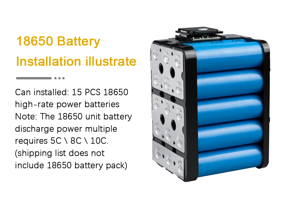 Note: The 18650 unit battery discharge power multiple requires 5C \ 8C \ 10C.