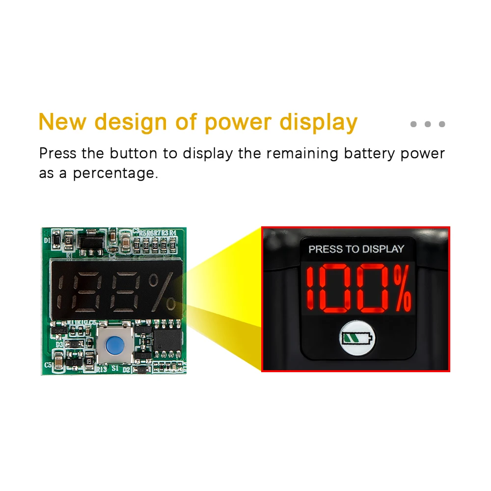 With LED indicate lights is percent capacity display,It can know the remaining power of the battery more accurately, avoid the battery being overused, and improve the battery life. You can also estimate the remaining working time through the remaining battery power.