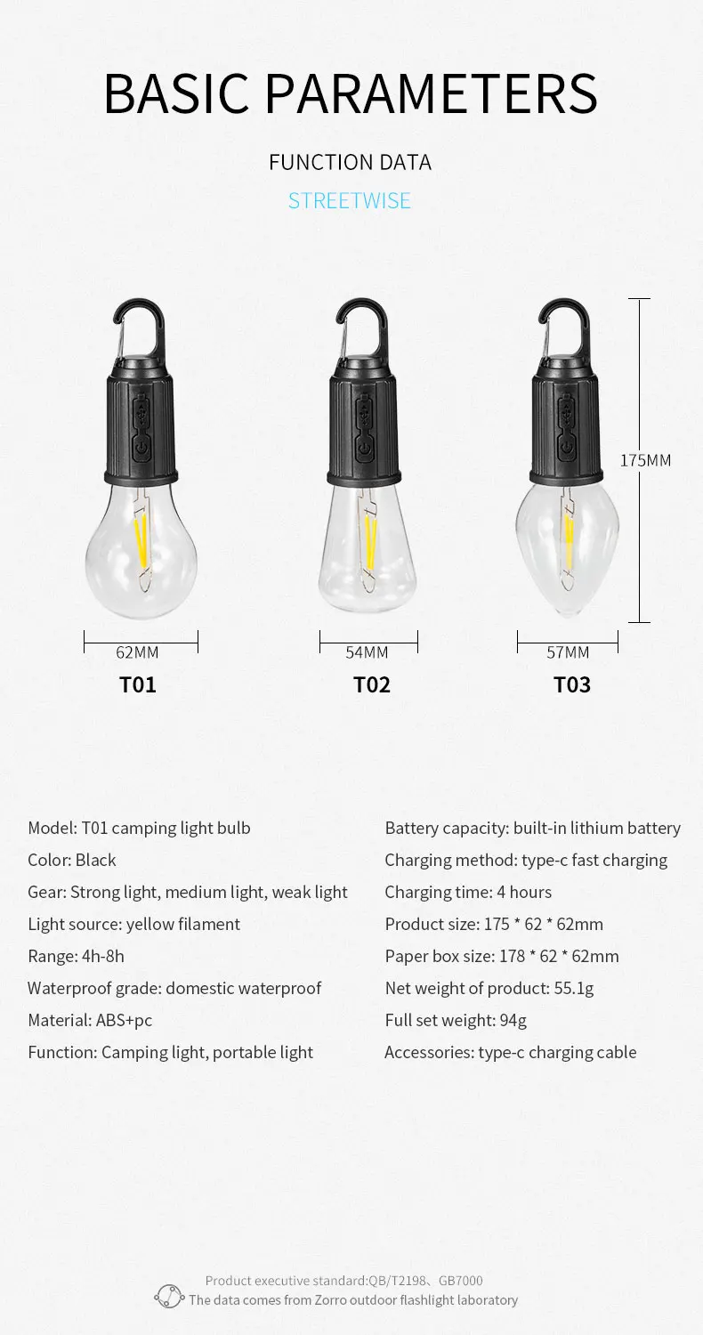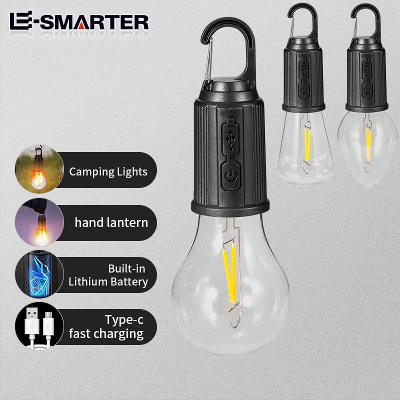 LED Camping Hanging Lanterns Portable Camping Tent Light Rechargeable Outdoor Waterproof Hiking Fishing Emergency Bulb with Hook
