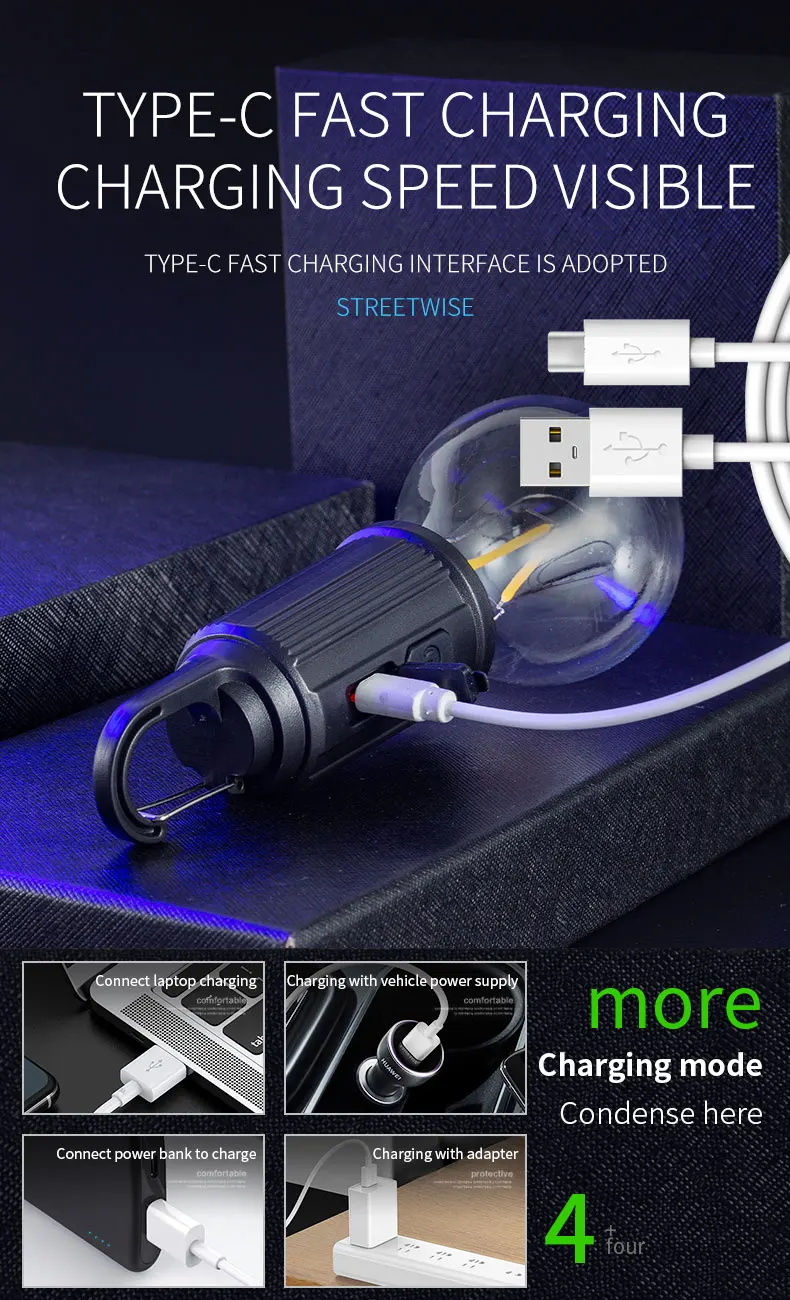 4. Long-Lasting Battery Life: The portable camping light comes with a built-in large-capacity rechargeable battery, ensuring extended illumination time. It can be conveniently charged using the visible Type-C fast charging interface, allowing for quick and efficient recharging even in challenging weather conditions. The lamp will be your reliable companion throughout your outdoor adventures.