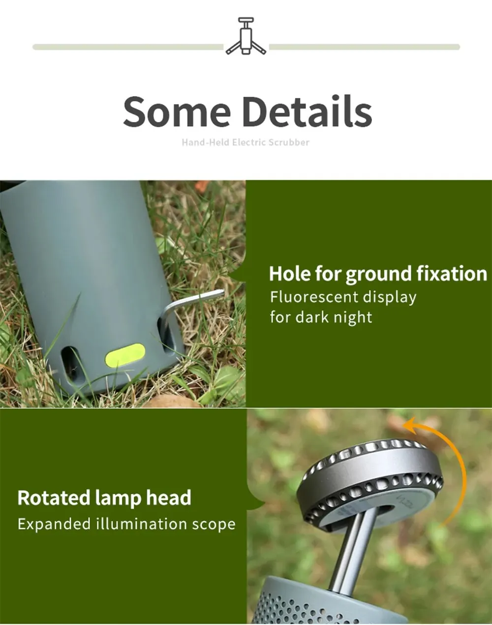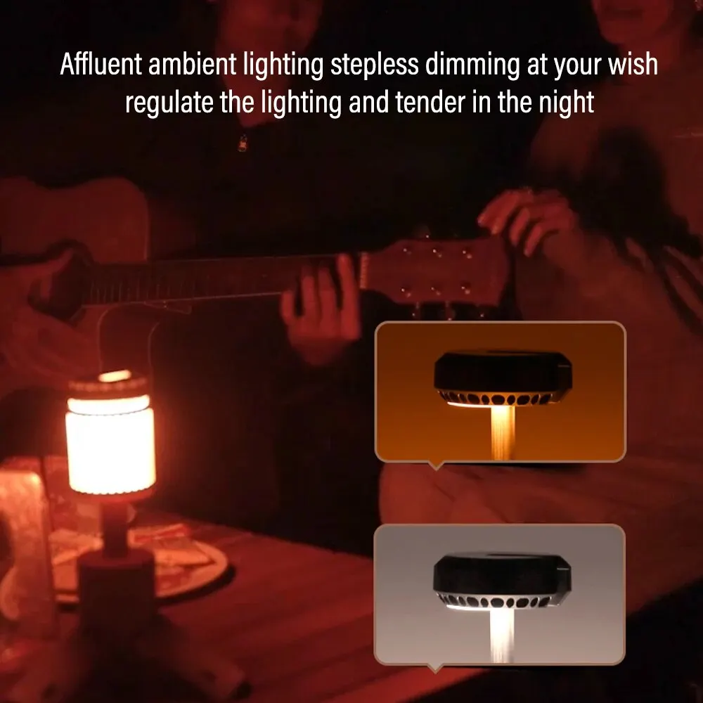 CAMPING ESSENTIAL: Our rechargeable camping light comes with three sturdy ground spikes to securely fasten it to the grass and prevent any untimely tipping. In addition, its ambient light mode can gently create a festive atmosphere, elevating your backyard party to a realm of enchantment and joy!
