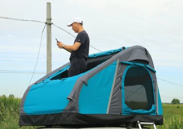 The new inflatable roof top tent adopted a new design with a weight of only 29 kg and a packing size of 43 x 48 x 98 cm.