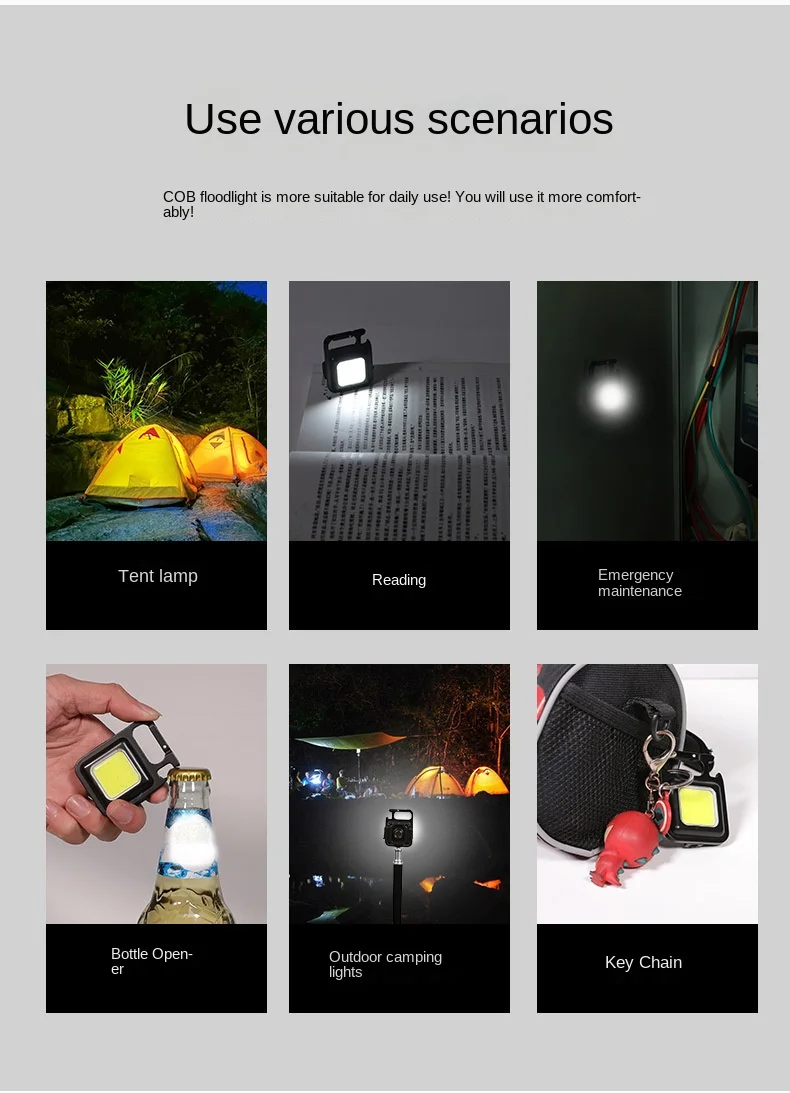 Mini LED Portable Keychain Flashlight Multifunction COB Work Light USB Rechargeable Strong Magnet Outdoor Camping Lantern