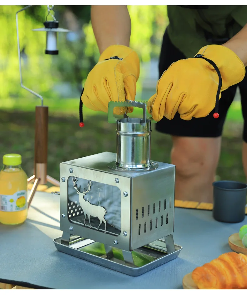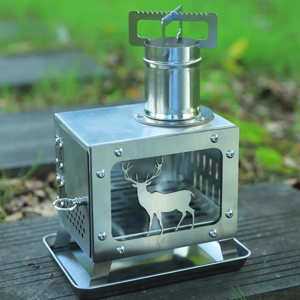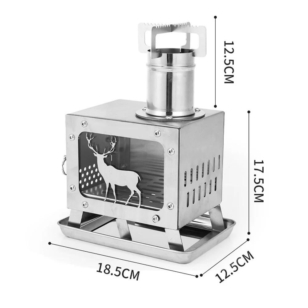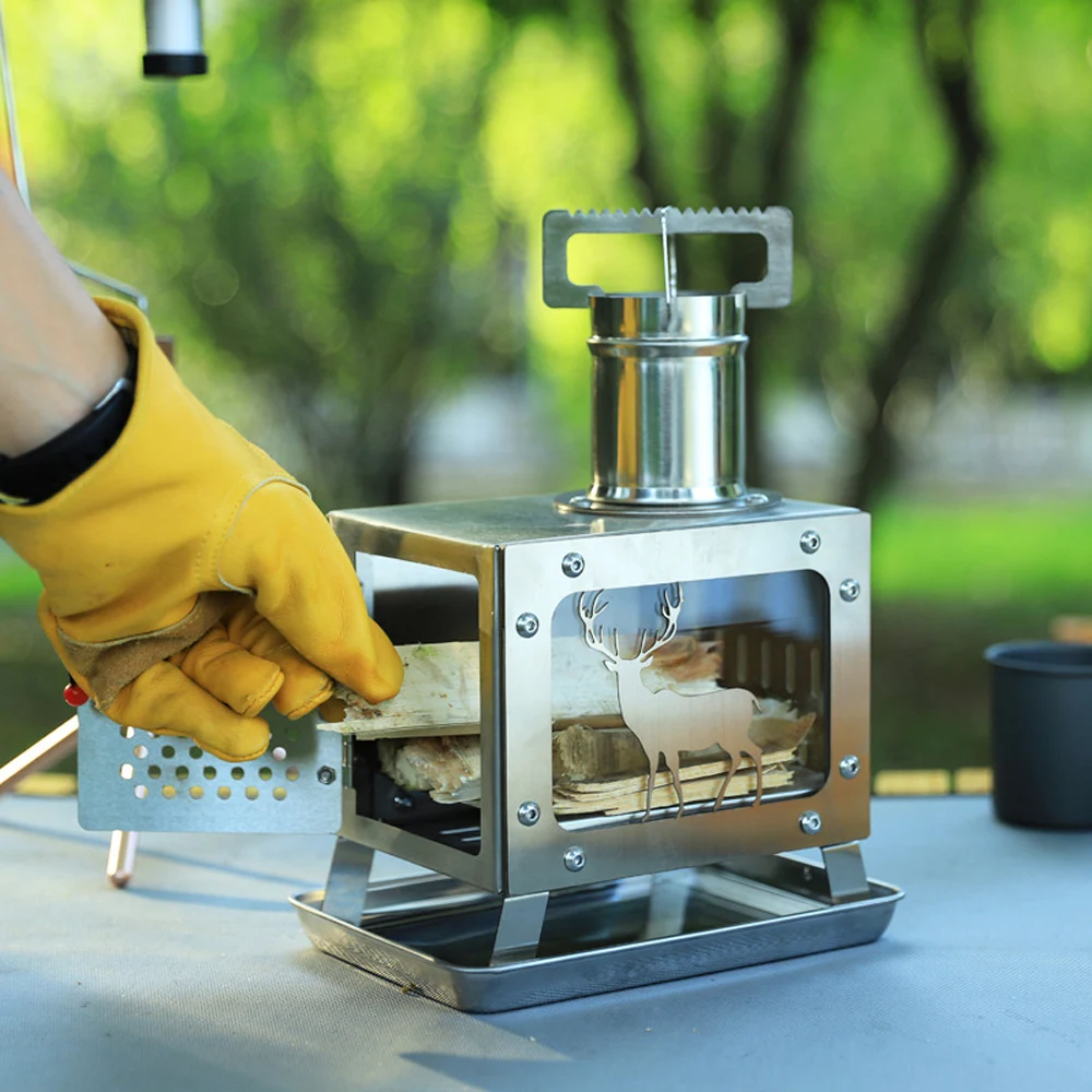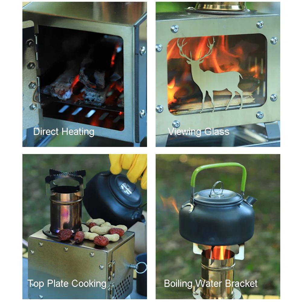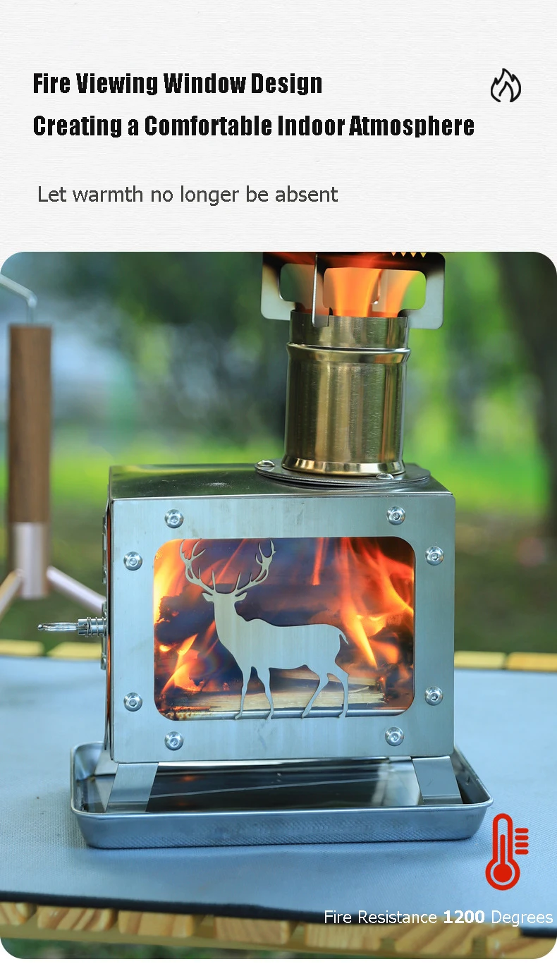 Mini Portable Camping Tent Stove with Glass Window Outdoor Fire Wood Heaters Quick Assemble Backpacking Hiking Burned Stove