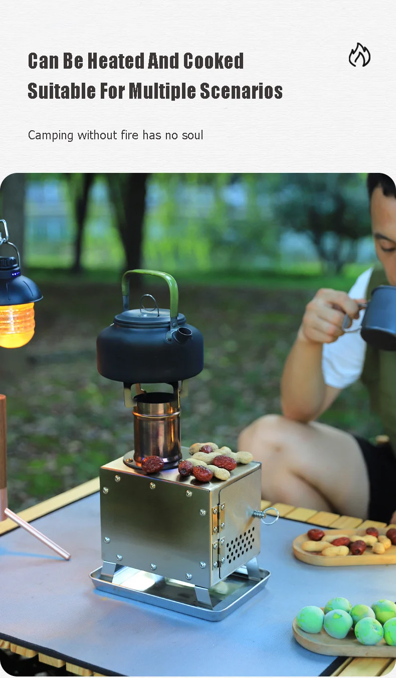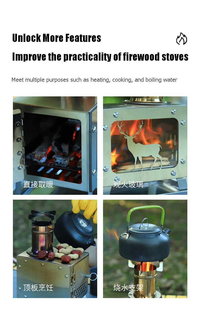Featuring a top opening design, it doubles as a heater and can be used for cooking or boiling water. The fire viewing window adds a cozy indoor ambiance, allowing you to enjoy the warmth and comfort.