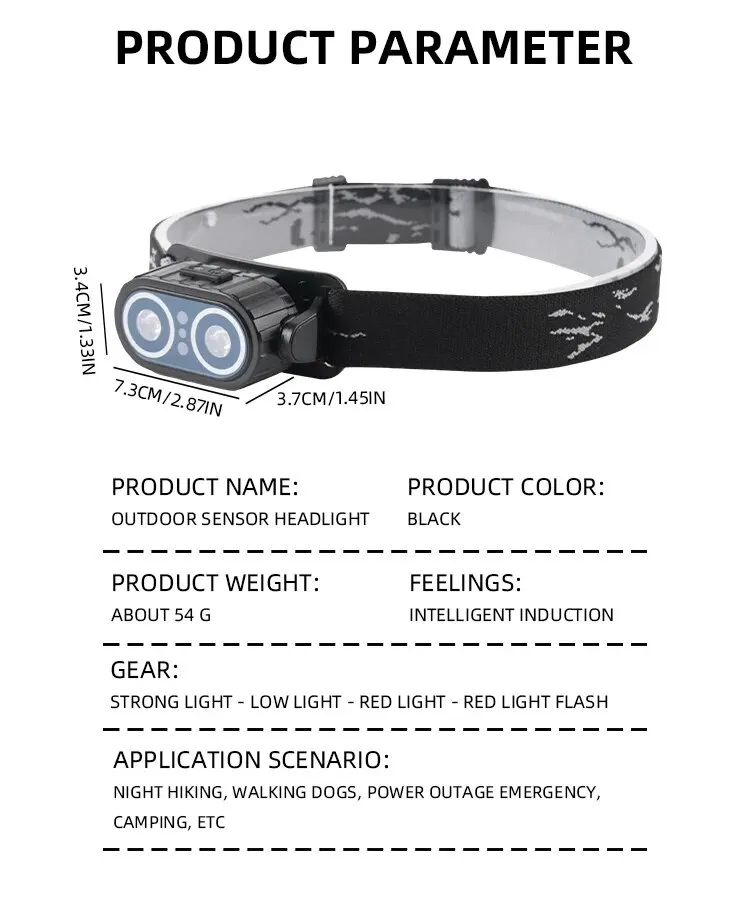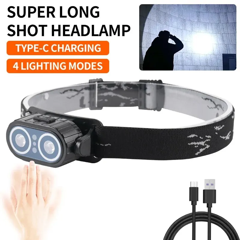 Mini Rechargeable Powerful Sensor Headlamp USB Head Flashlight Torch Headlights LED Head Light Camping Search Light