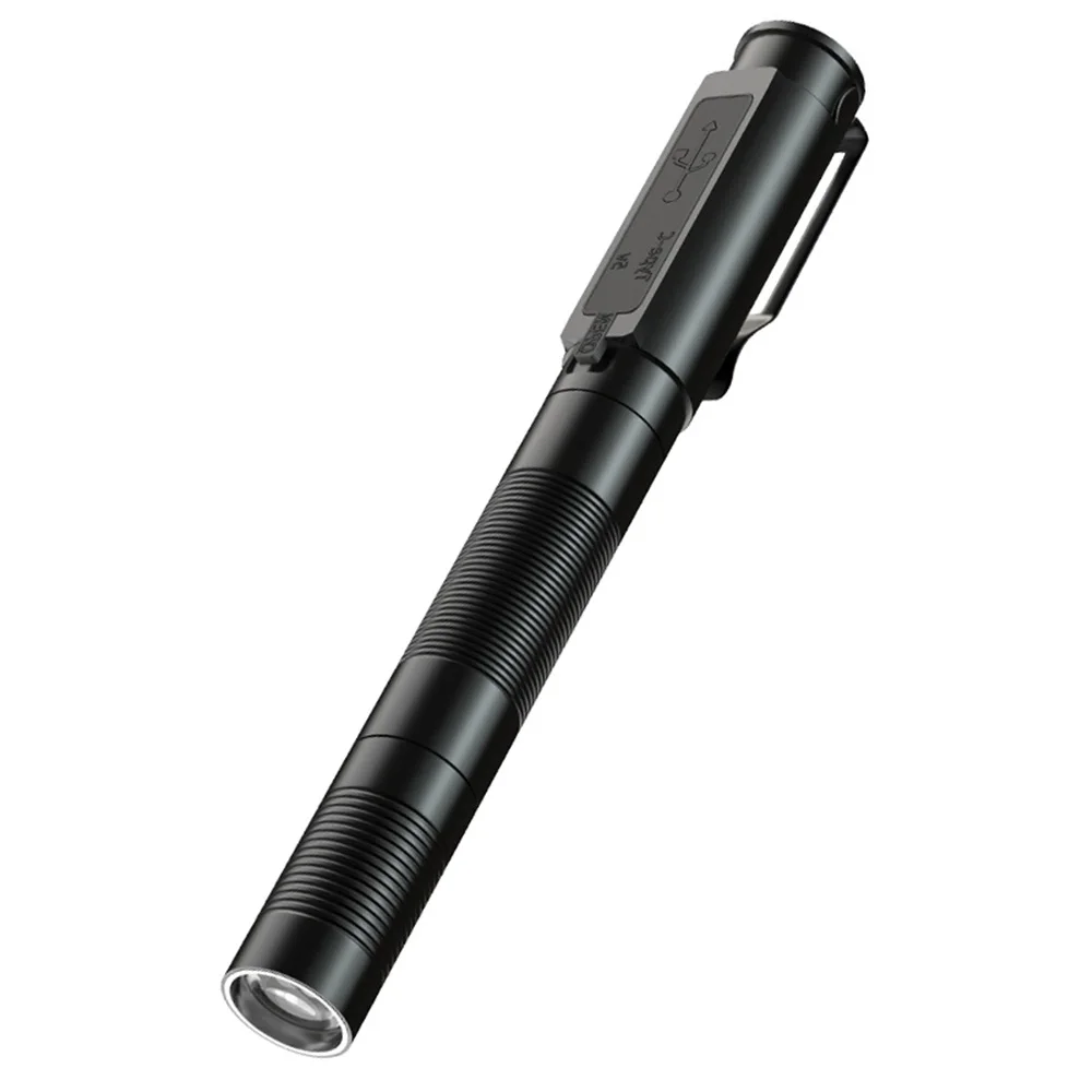 Mini Zoom Pocket Pen Lamp Led Flashlight Penlight USB Rechargeable White Light Camping Hike Work Emergency Lighting Check Torch
