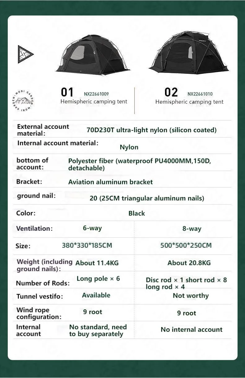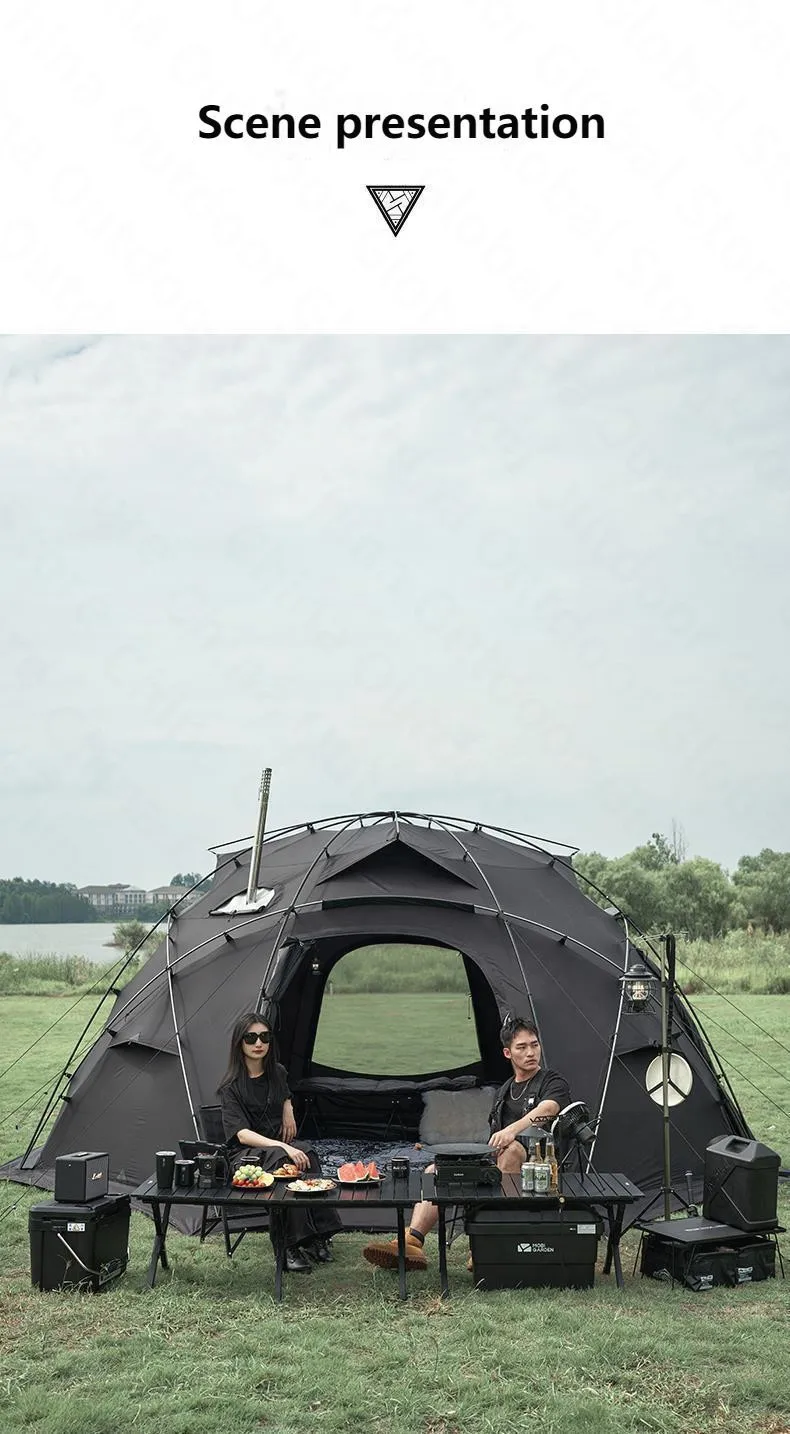 MOBI GARDEN 9.3㎡/18.8㎡Outdoor Large Space Dome Tent 70D 230T Black Spherical Tent 8Persons Camping Travel Tent With Snow Skirt
