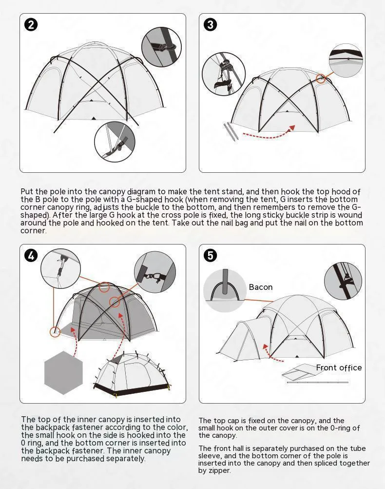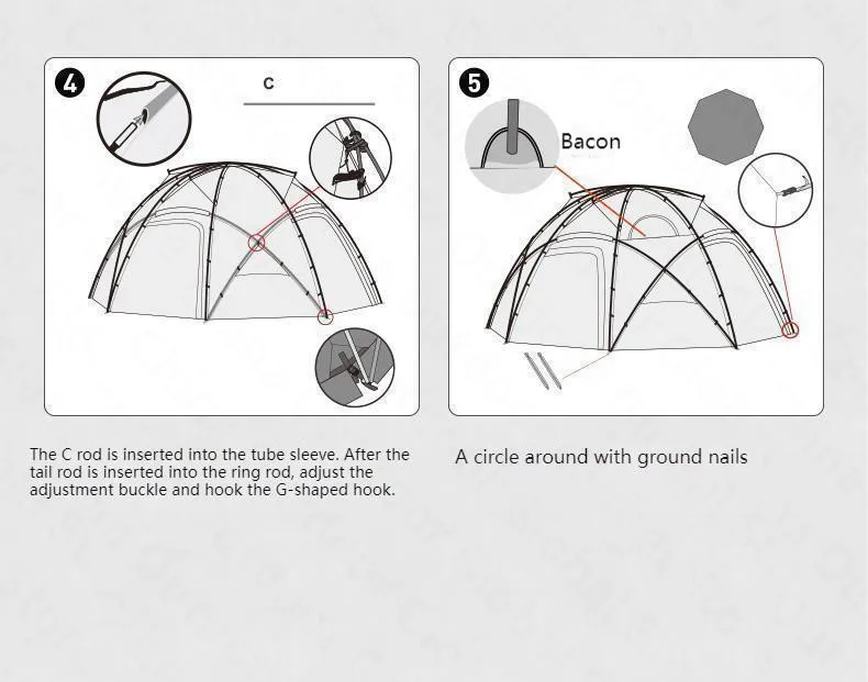 Size: 380*330*185CM (185 Tent) / 500*500*250CM (245 Tent)