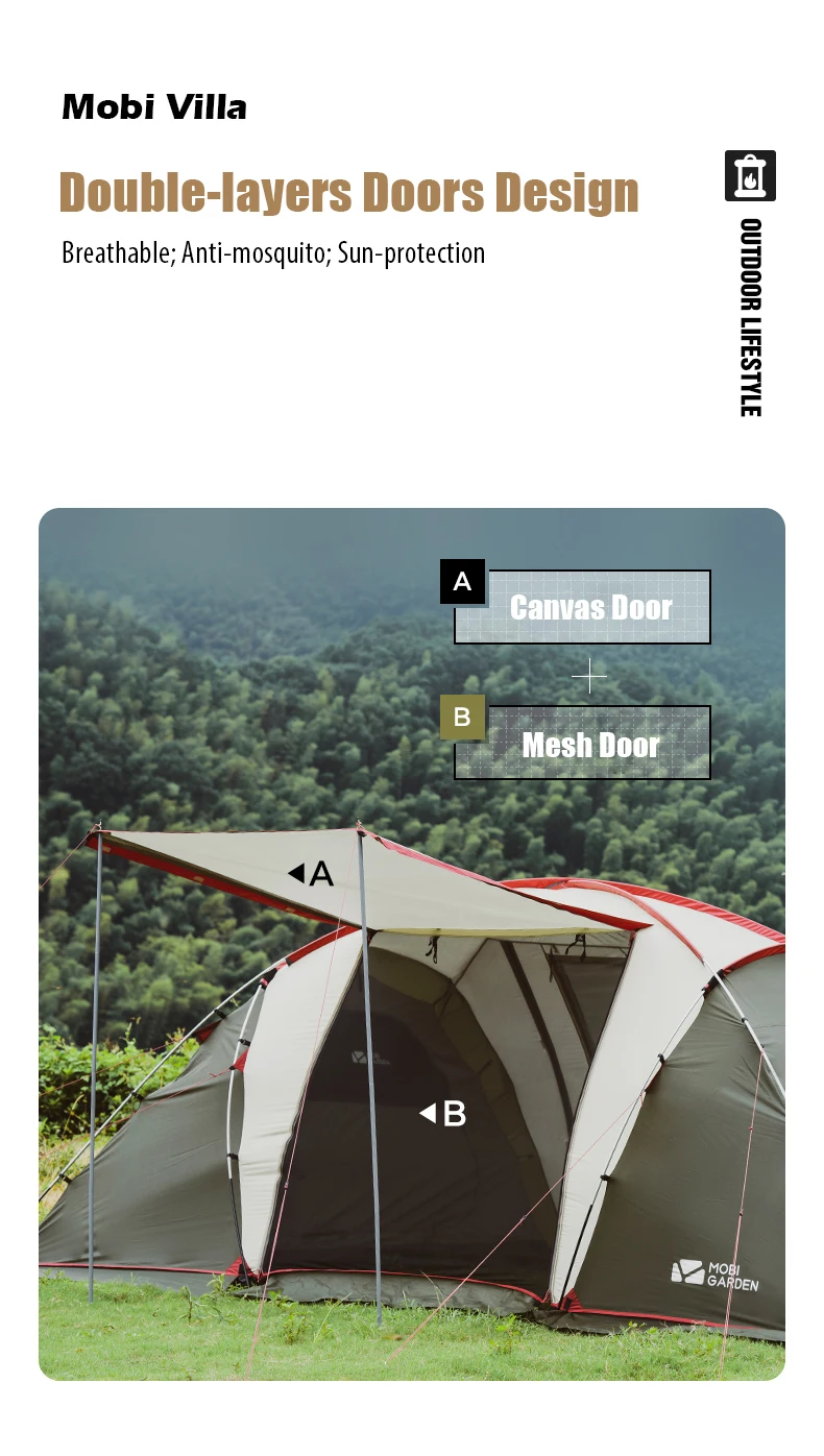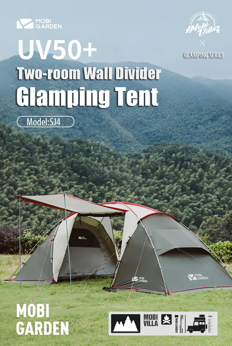 Mobi Garden ShiJia SJ4 Olive Green Large Family Tent 2 Rooms with Porch 4 Persons For Camping Travel Trekking Backpacking Luxury