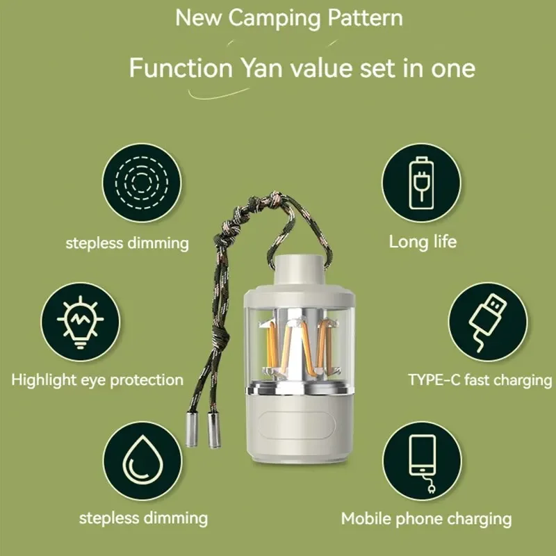 Multifunctional Portable Camping Lamp Dimming Tungsten Light Type-C Rechargeable Outdoor Emergency Tent Lantern Flashlight