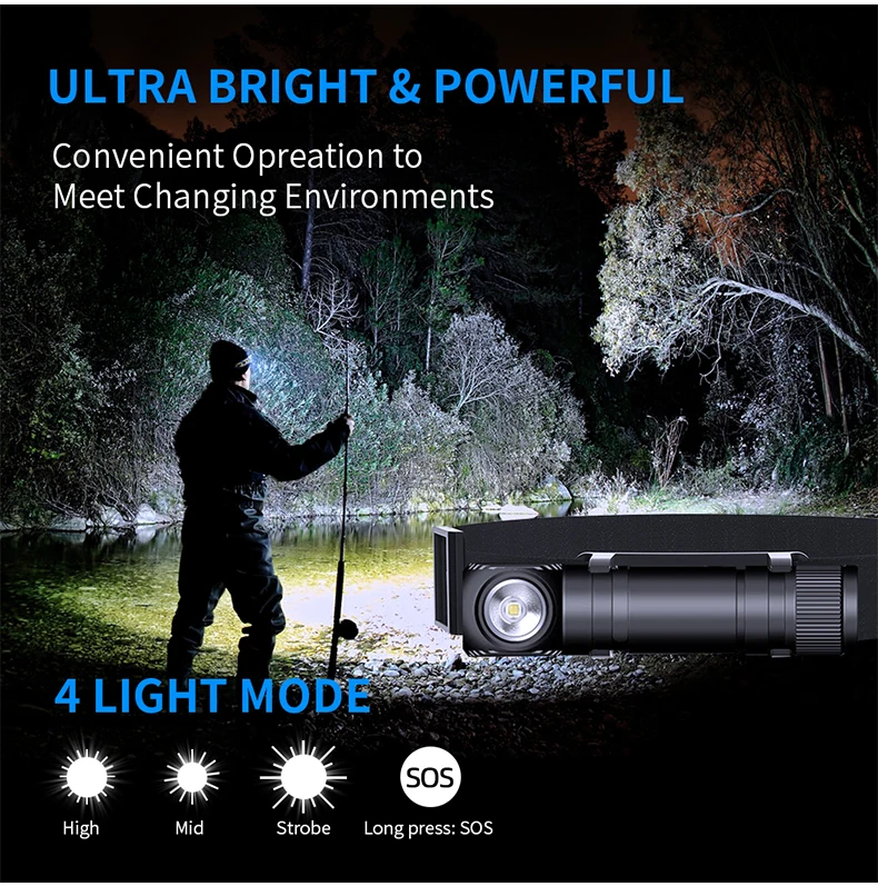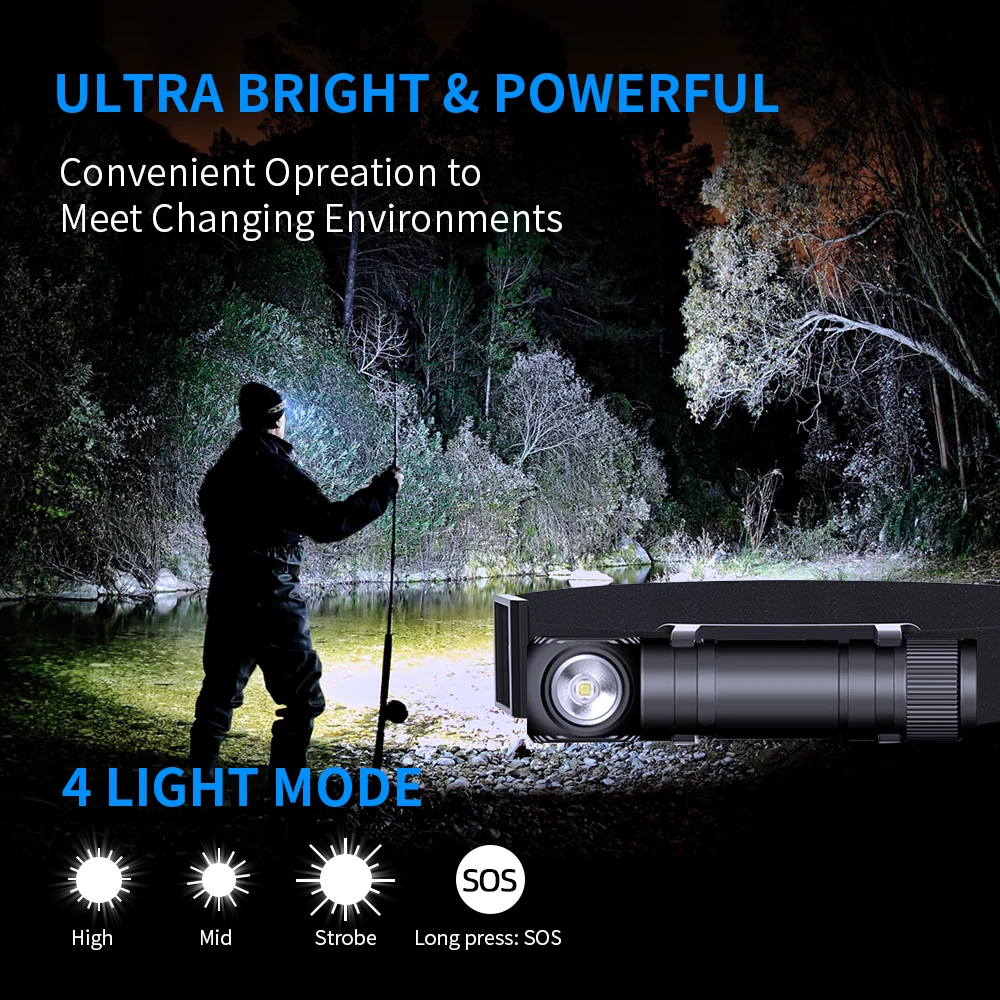 NATFIRE HS50 Headlamp LED EDC 18650 Rechargeable USB C Head Lamp 1000LM Bright Outdoor Fishing Torch with Magnet Tail Cap