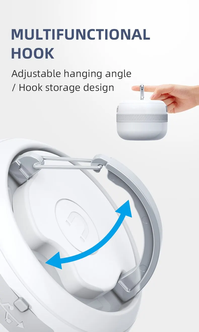 Hanging Design & Charge Protection: With the hanging design and hook, you can enjoy full light in the tent.The 90 degree rotatable metal stand. You can choose the most suitable lighting angle. In addition, all ports have charging protection function. The built-in ultra-reliable A+ lithium polymer battery and high-quality chip can ensure safety and durability, and the perfect charging protection function makes you and your device safer.