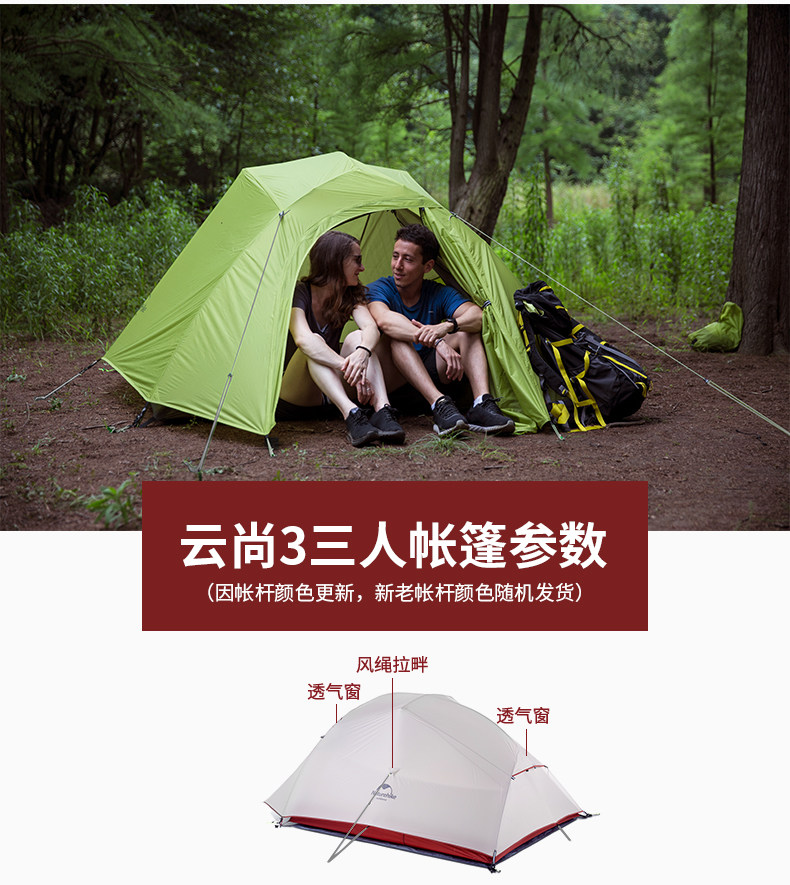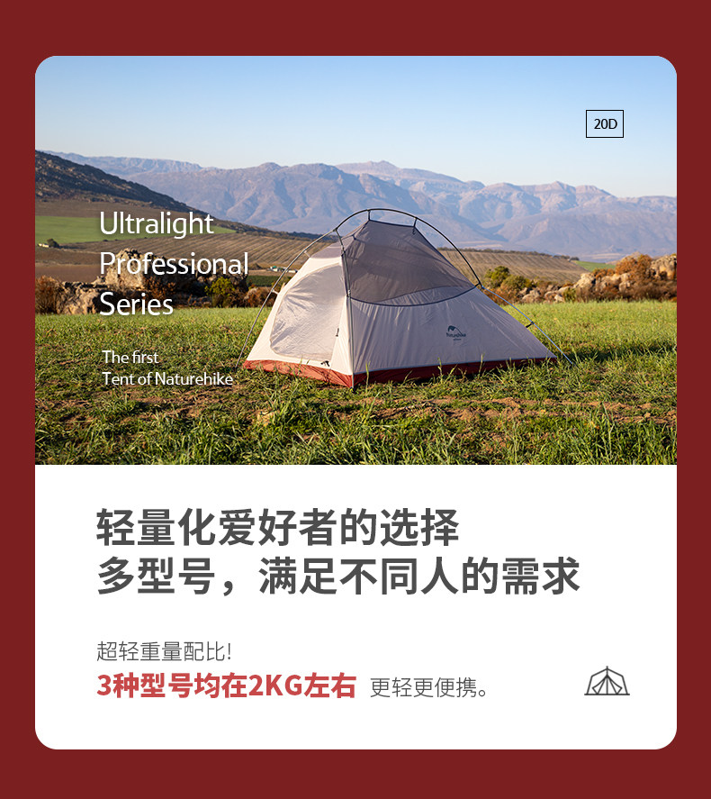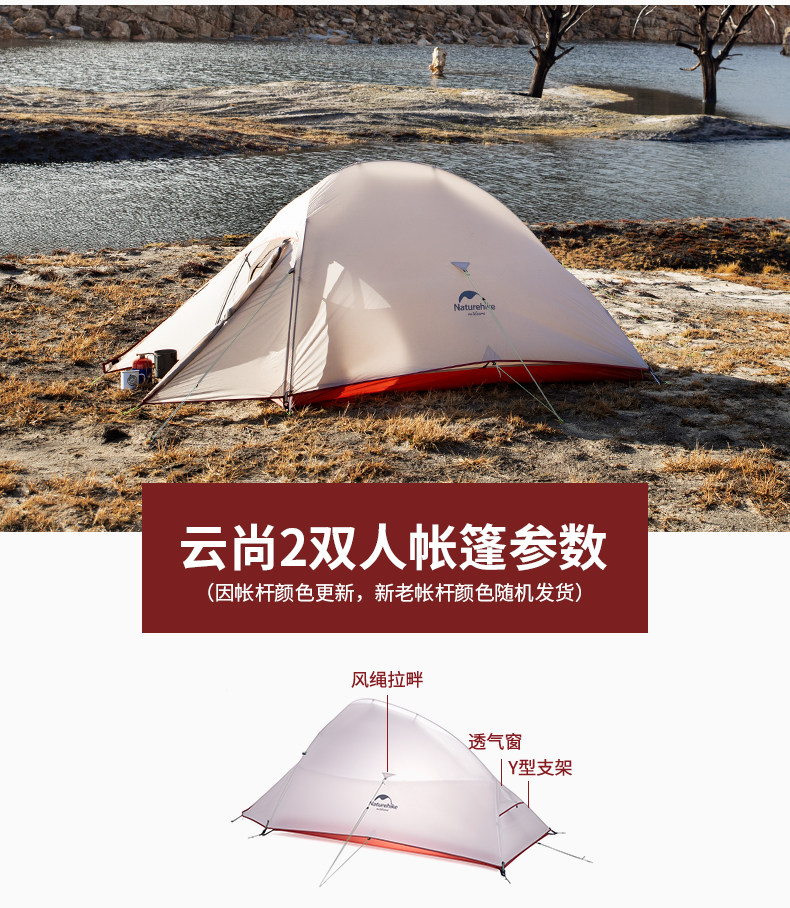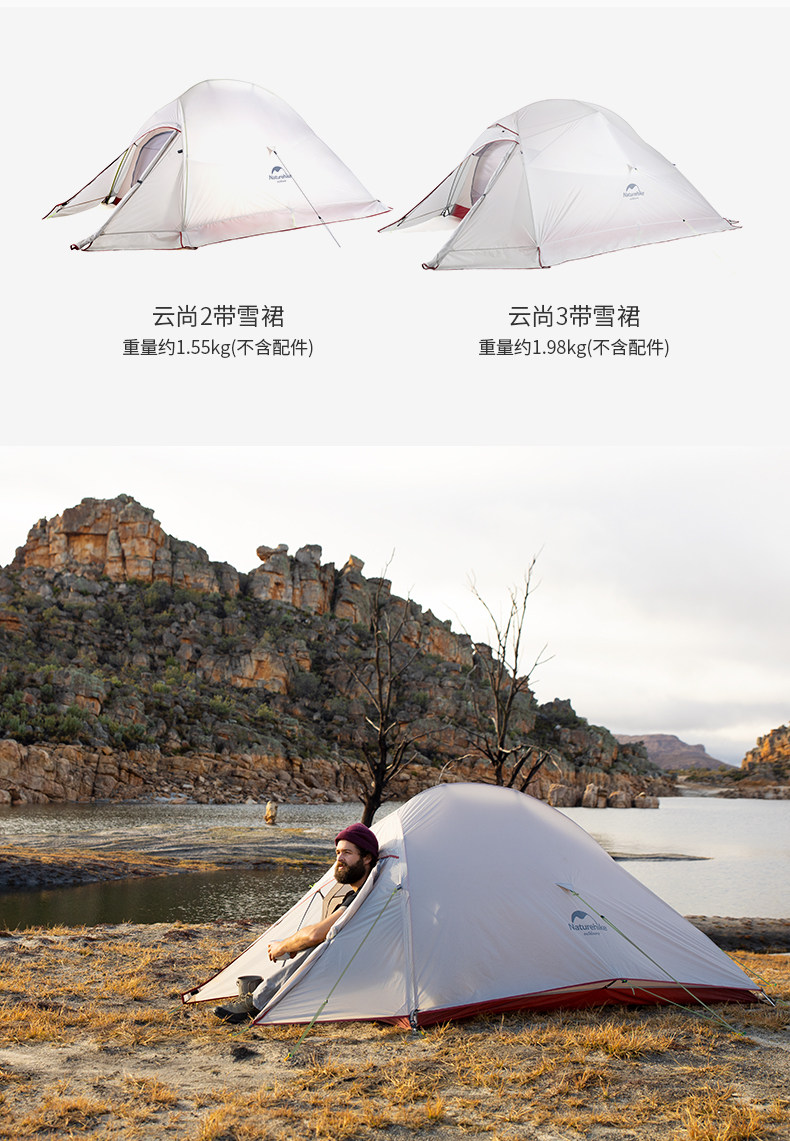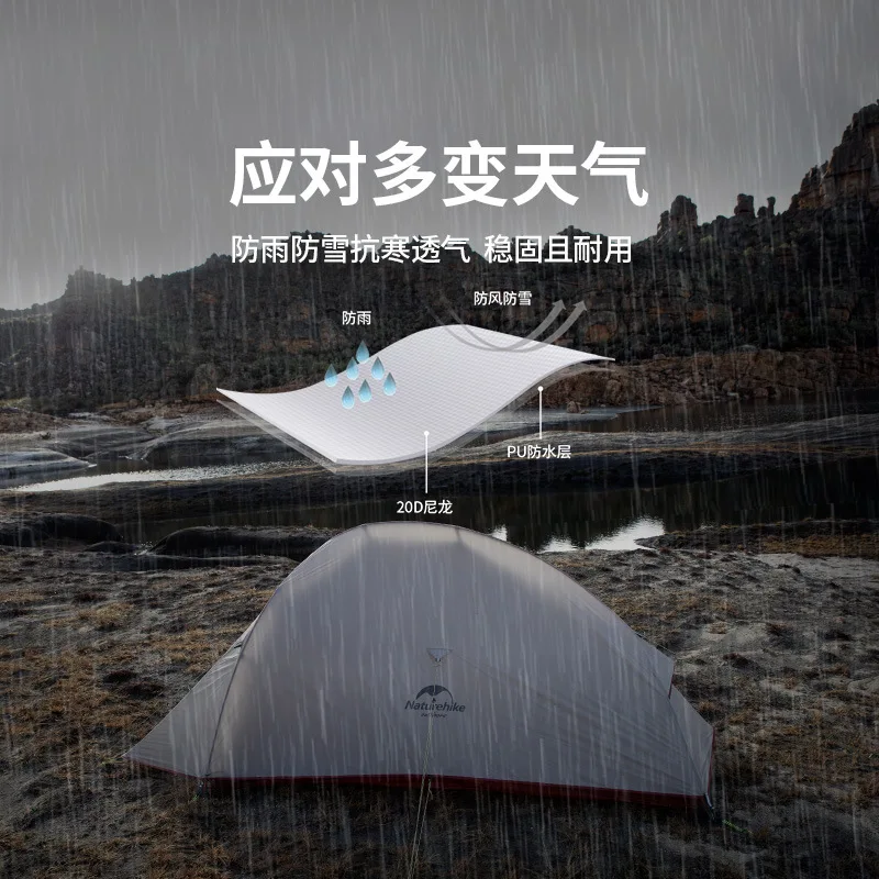 Naturehike Cloud Up Series Tent Ultralight Camping Tent For 1-3 People Thickened Rain-proof Tent Large Space Outdoor Field Tent