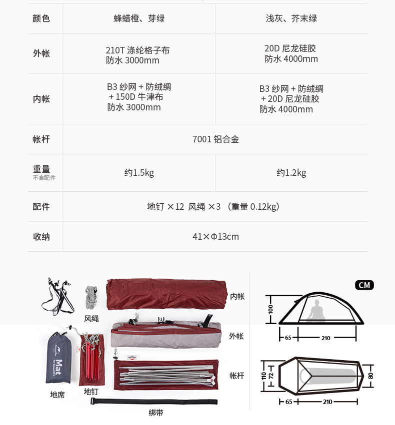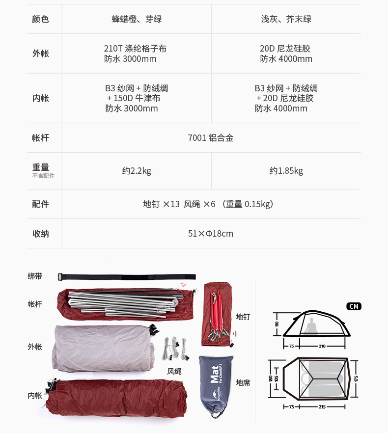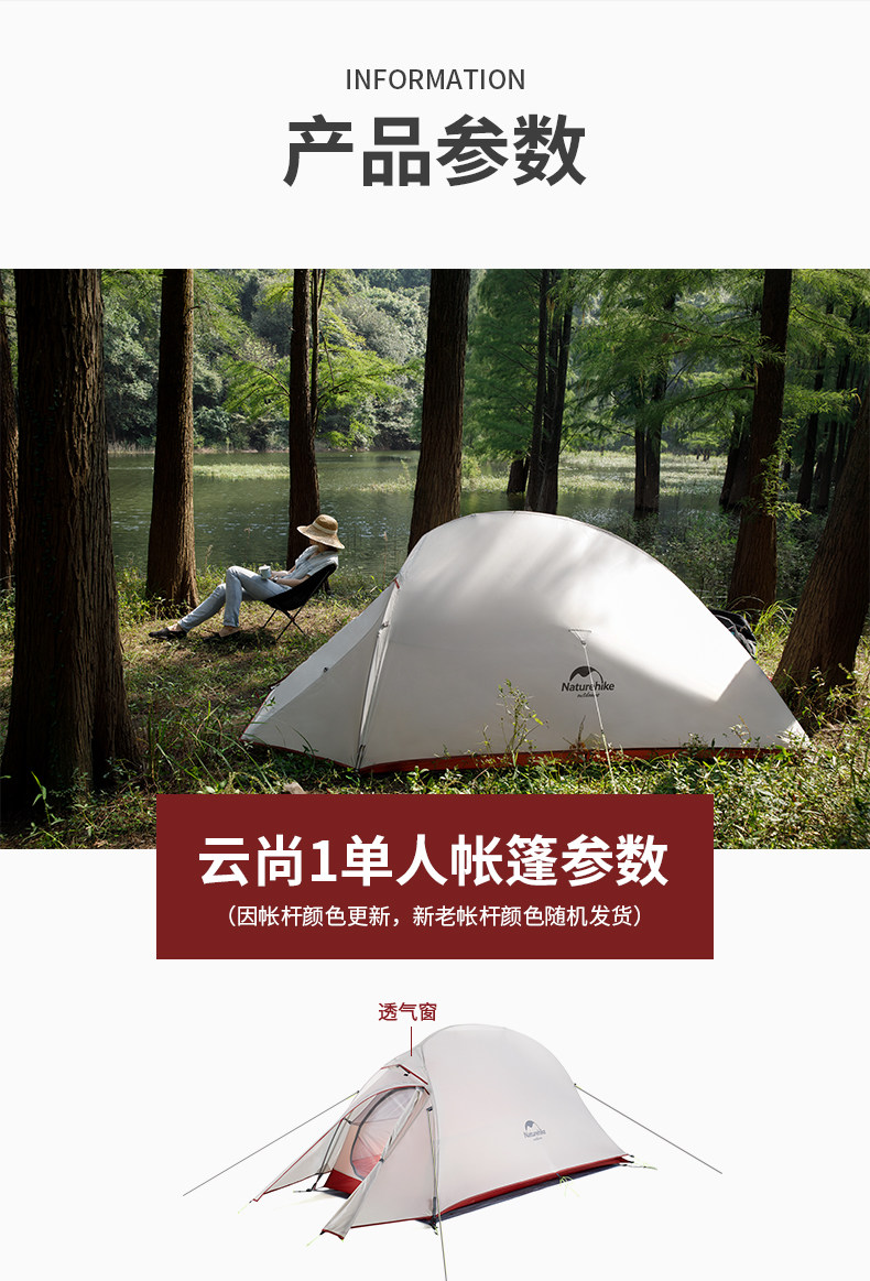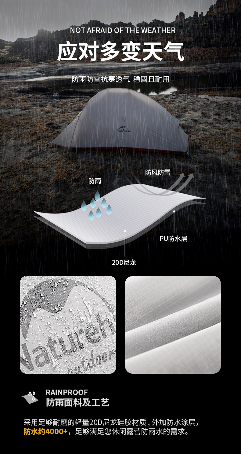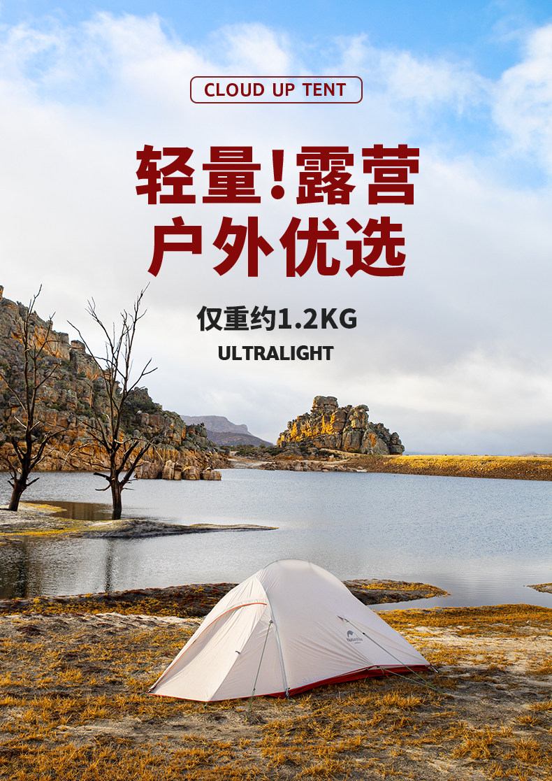 Naturehike Cloud Up Series Tent Ultralight Camping Tent For 1-3 People Thickened Rain-proof Tent Large Space Outdoor Field Tent