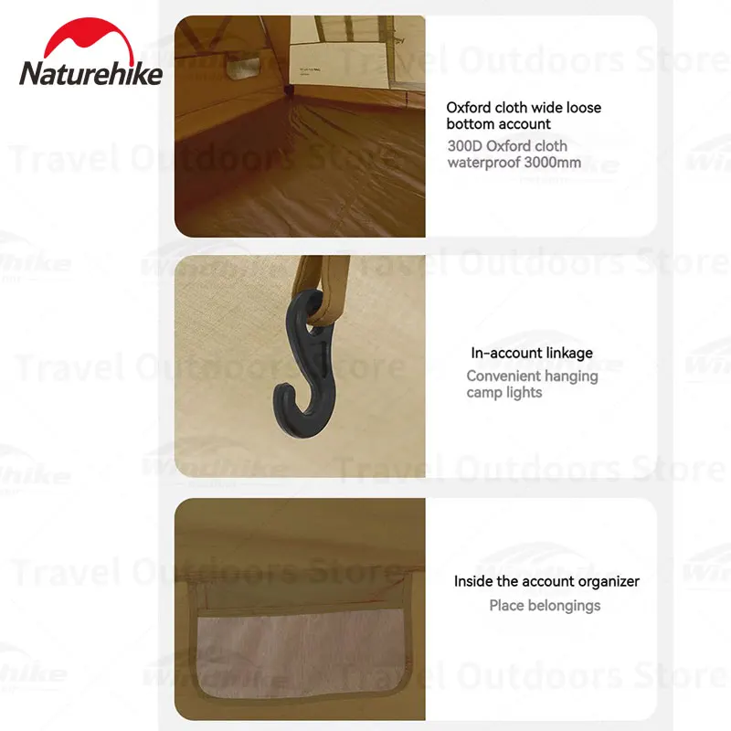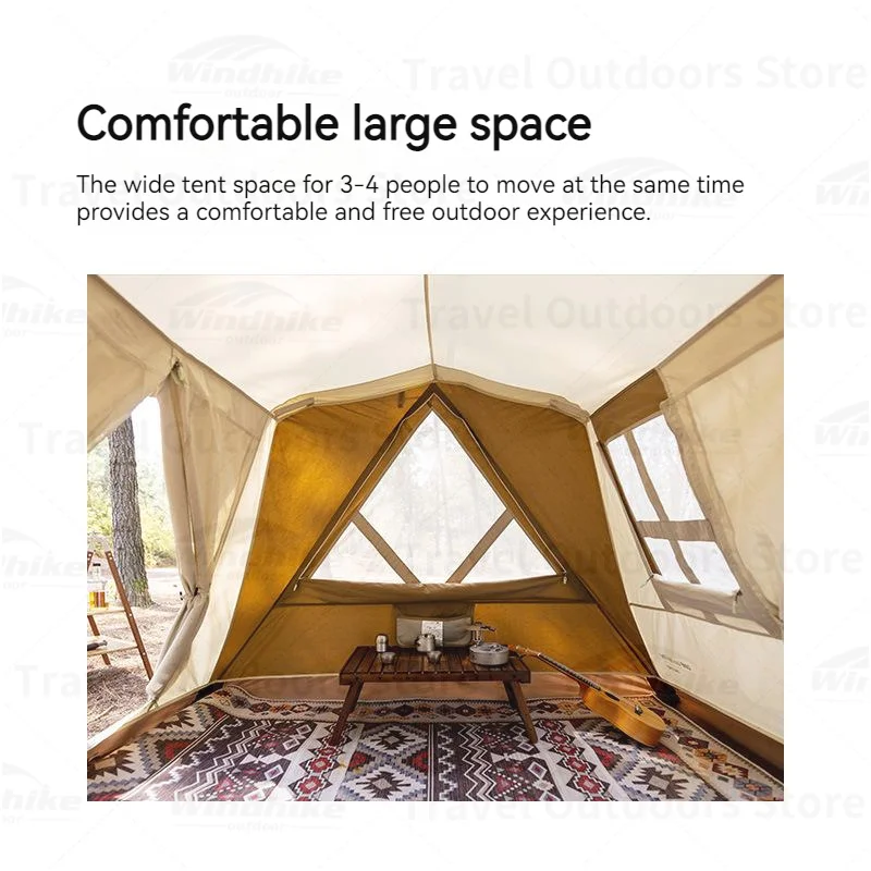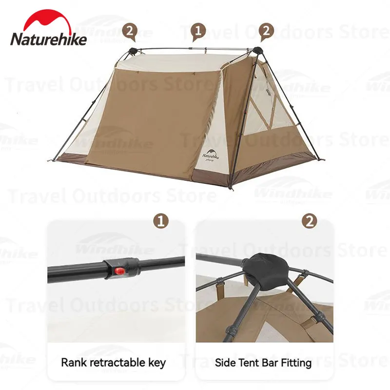 Naturehike Outdoor Automatic Tent One-touch Pop-up Tent A-Type Cotton Cabin House Tent Clamping 3-4 Person PU3000mm Bottom Tent
