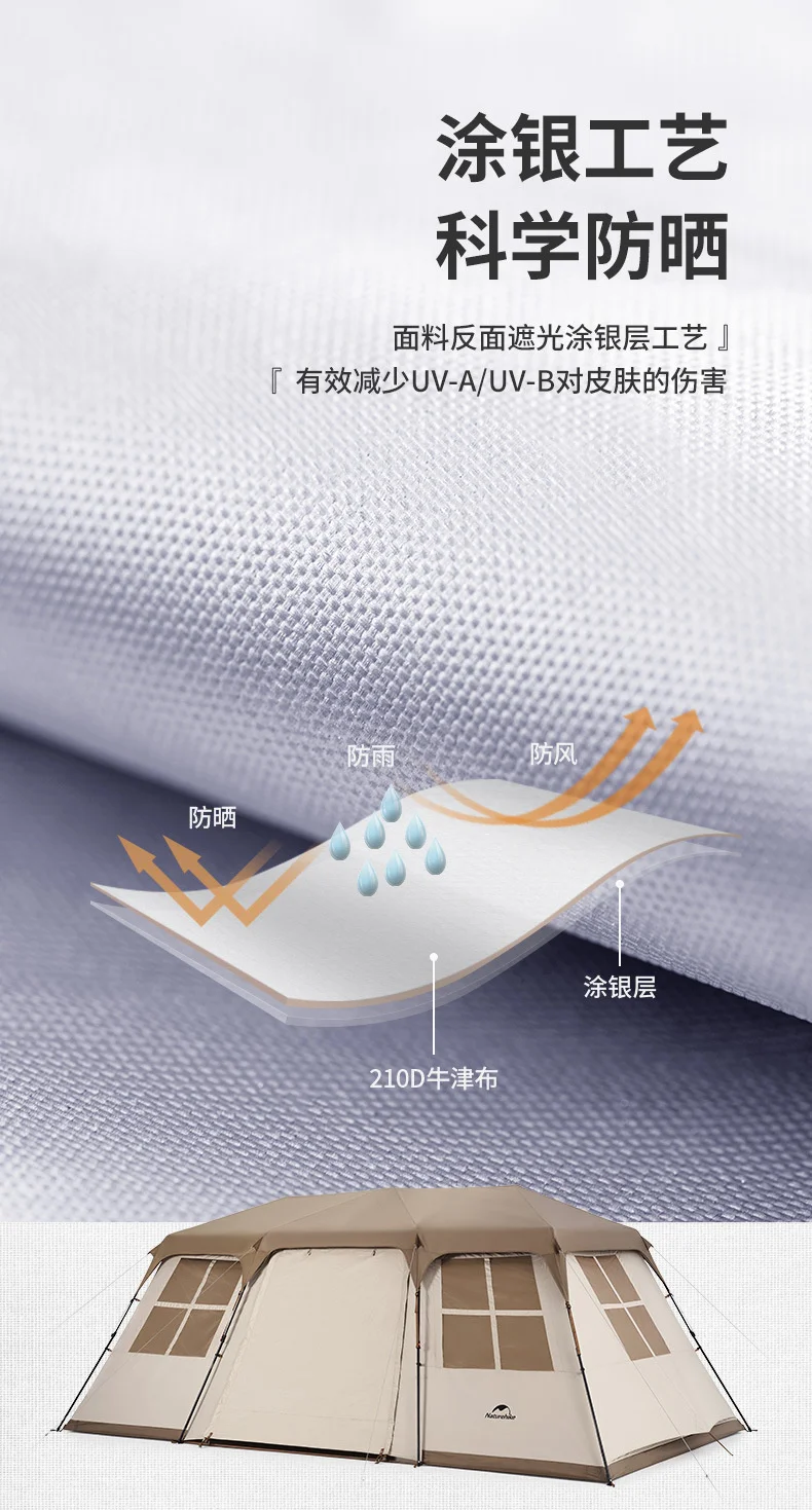 Naturehike Village17 Automatic Tent Outdoor Camping Large Space Ridge Tent Double Hall Waterproof Sunscreen Automatic Tent