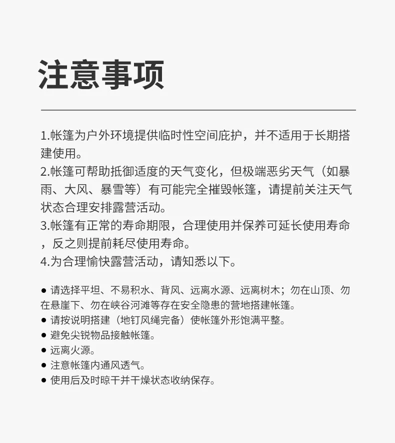 Bottom Tent Material: 300D Polyester Oxford PU3000MM