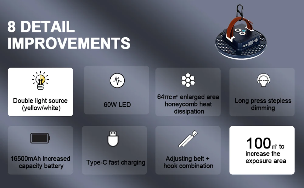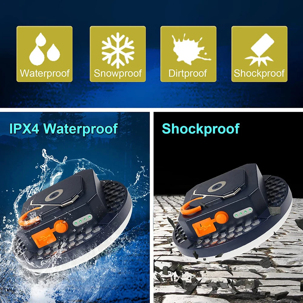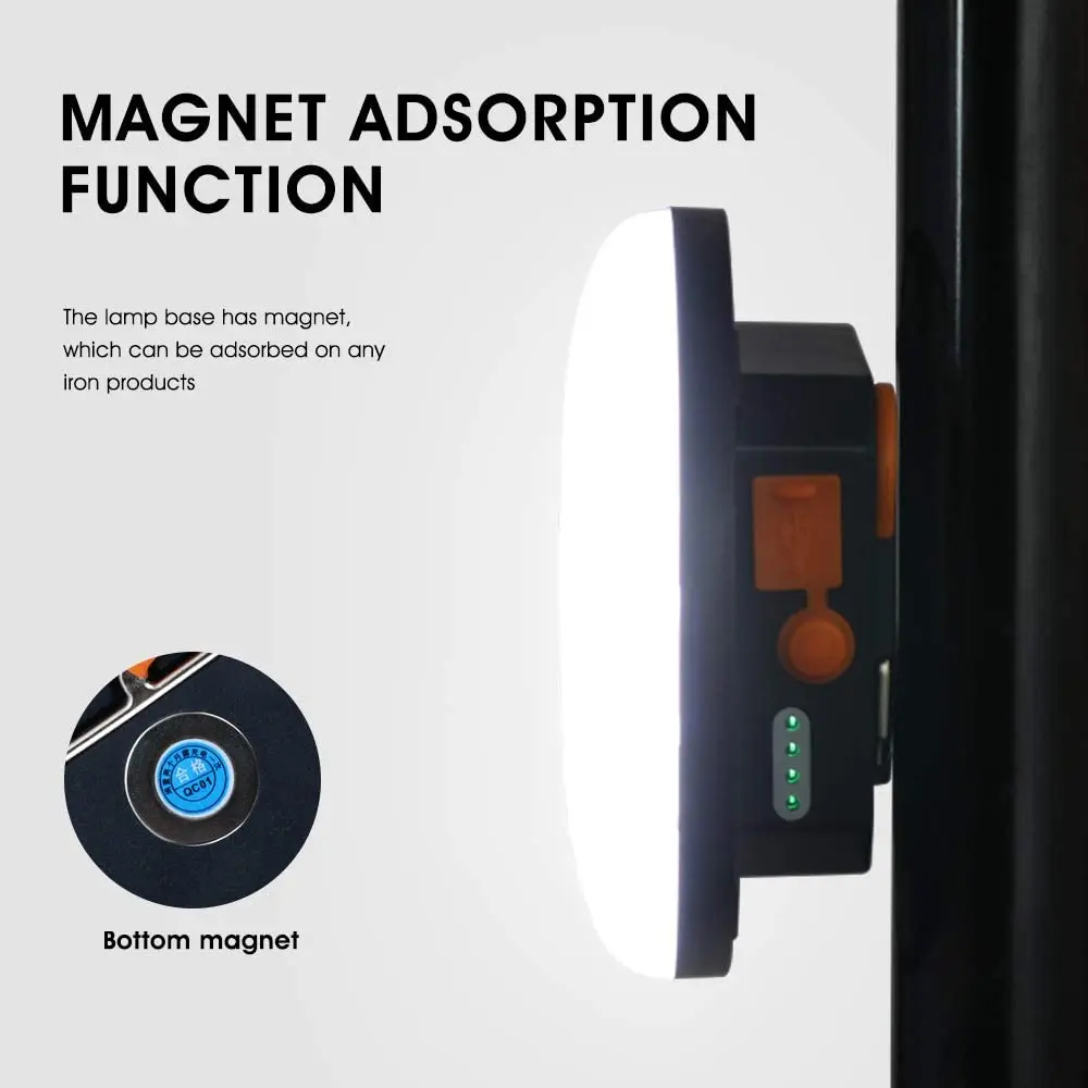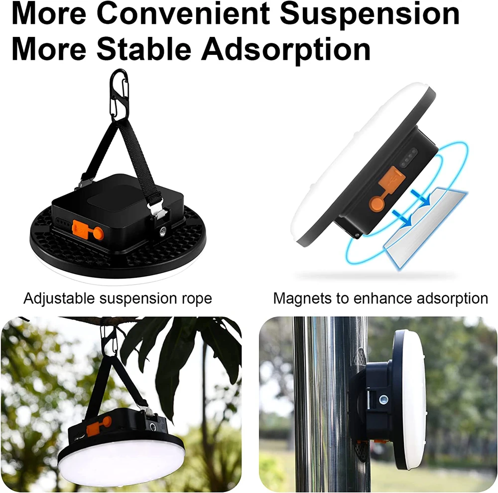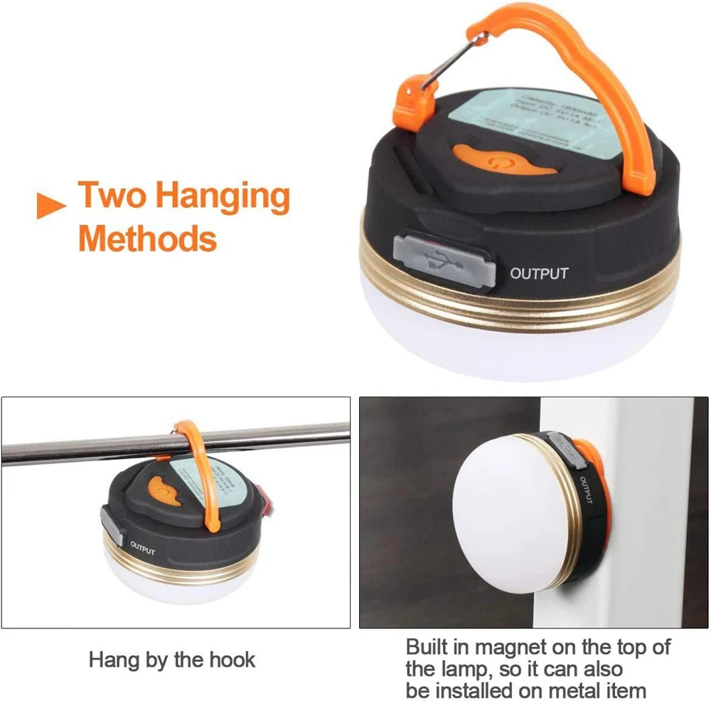 【Convenient to use】This portable camping lantern comes with one hooks and magnet, at the base that can hang the tent light upside down to get better light when lighting up a big area.The magnet could adsorbed on a large area of metal, due to the small size of the magnet, only belongs to the auxiliary role, please use with caution.