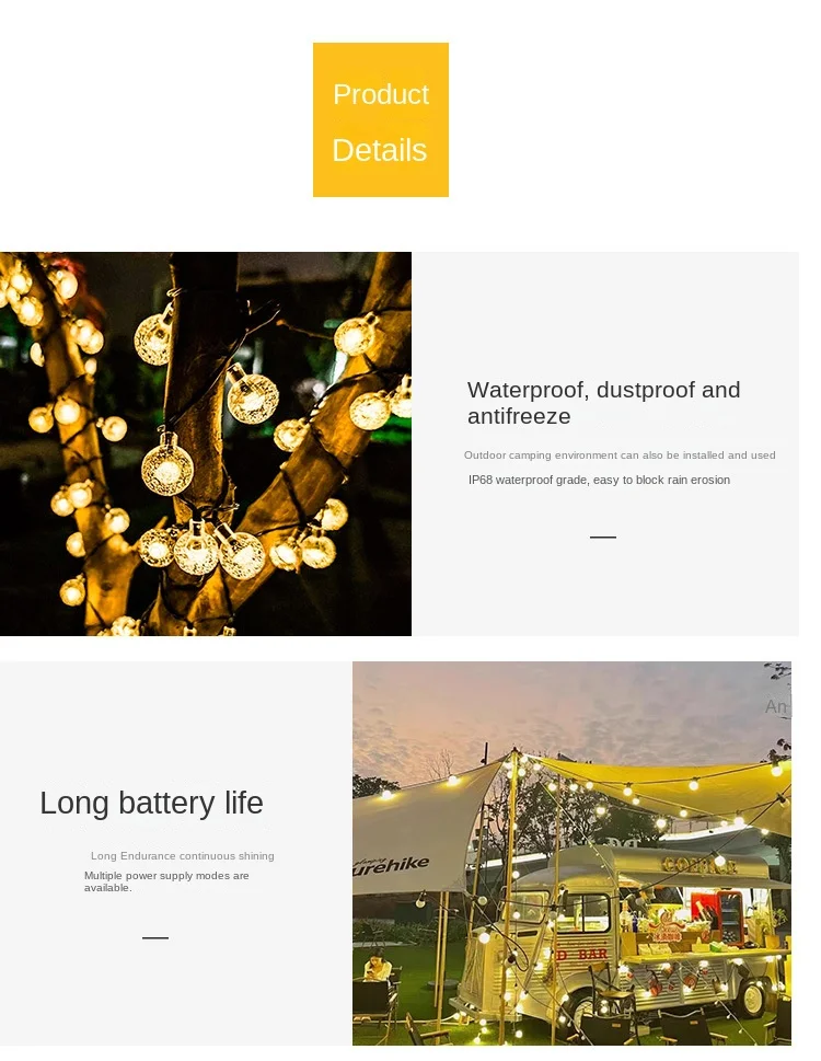 Outdoor Camping Atmosphere Light LED Ball Light String Tent Camping Light with Decorative Color Light Solar Ceiling Light Strip