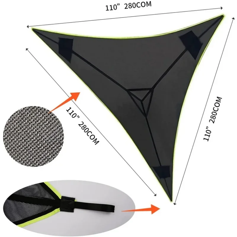 【Triangle Hammock】 The hammock is suspended off the ground between 3 anchor points and so theres no need to find level ground. Being held above the ground moves you away from damp, uneven or stick/stone covered ground