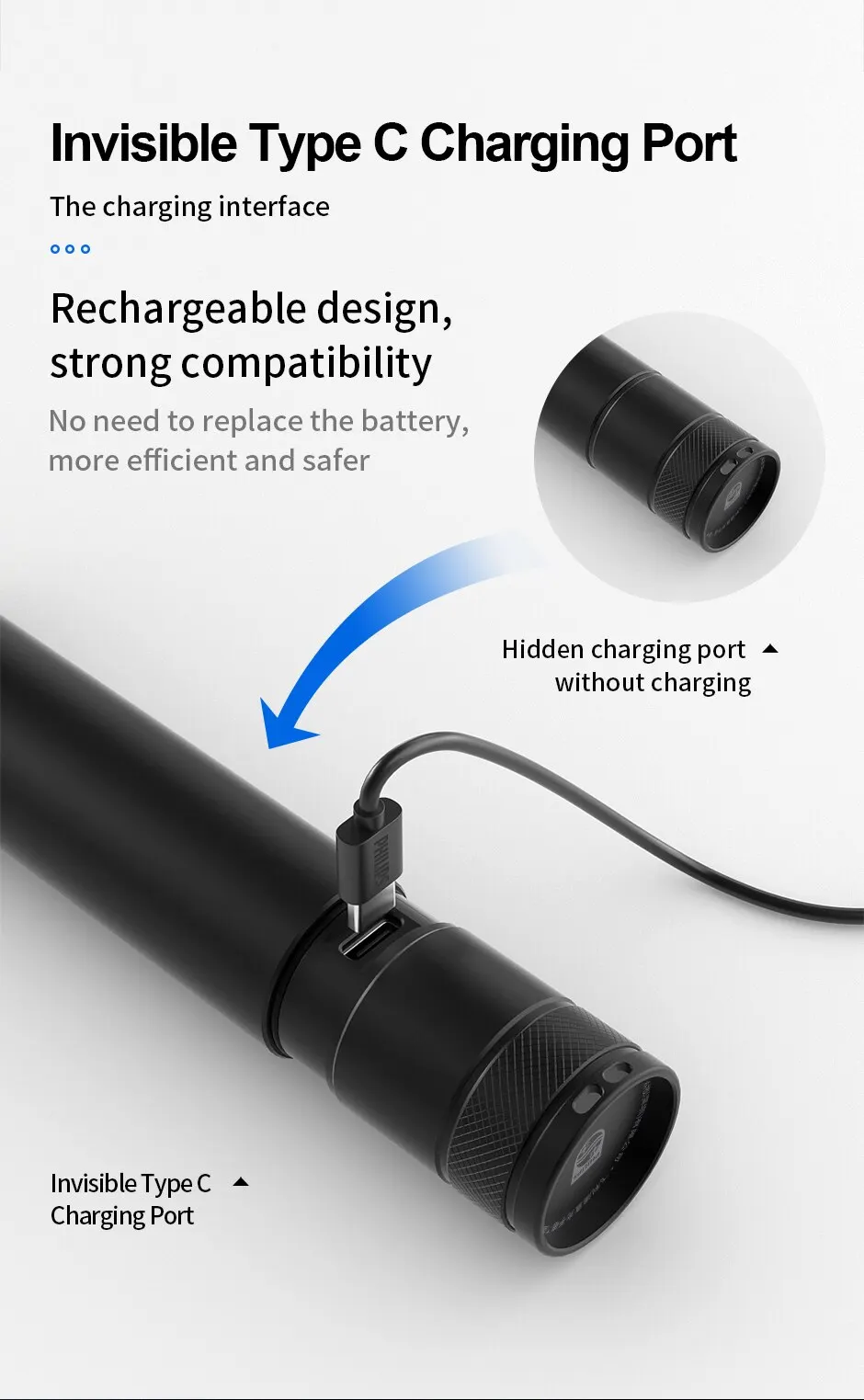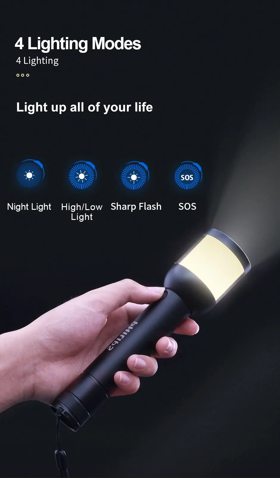 Philips Camping Lamp 2 in 1 Design Portable Flashlight 4 Lighting Modes Flashlights For Camping Self Defense Hiking