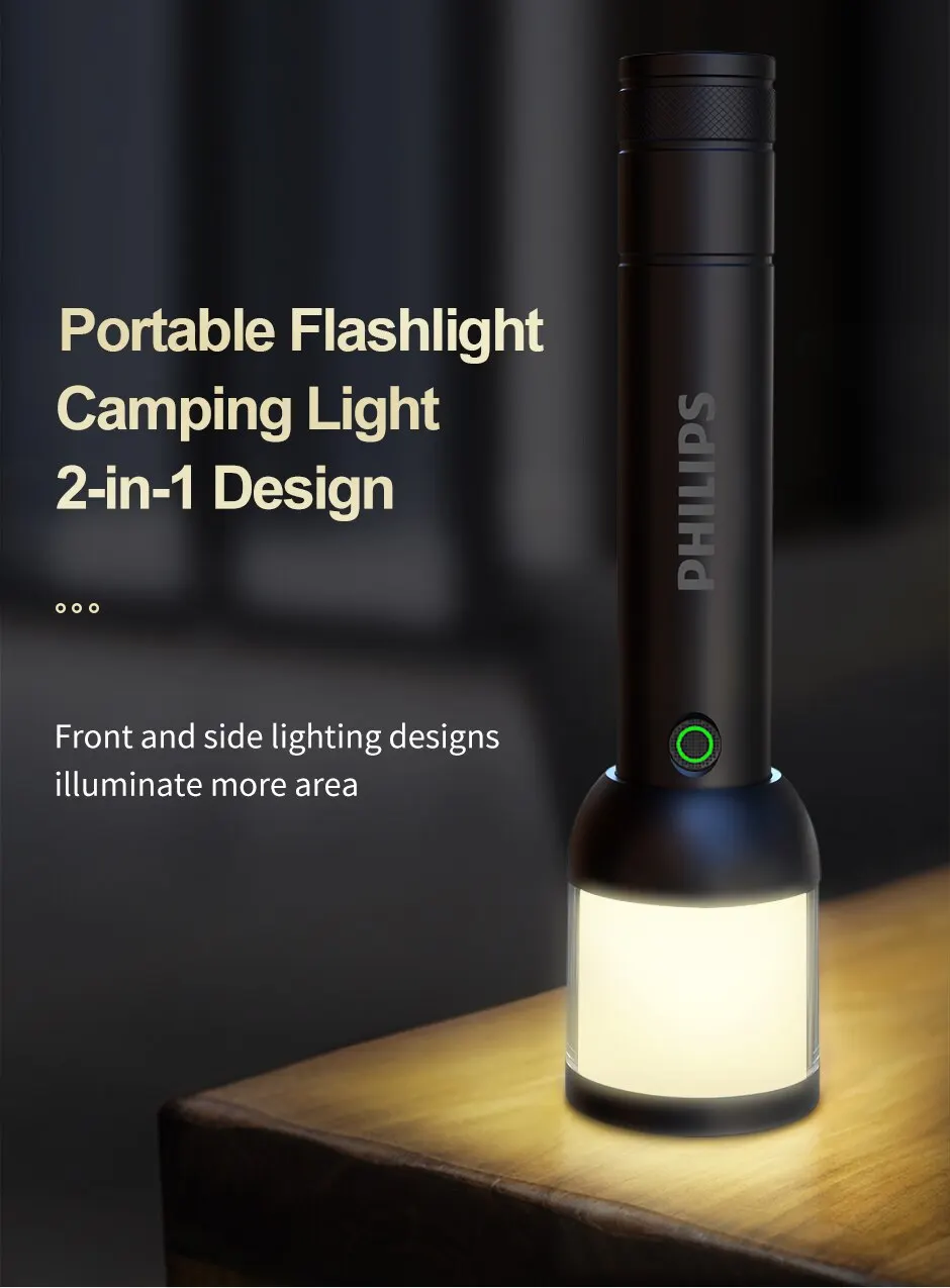 • 2-in-1 Design :The Philips camping lamp combines a portable flashlight and camping light in one, making it a versatile tool for outdoor activities.