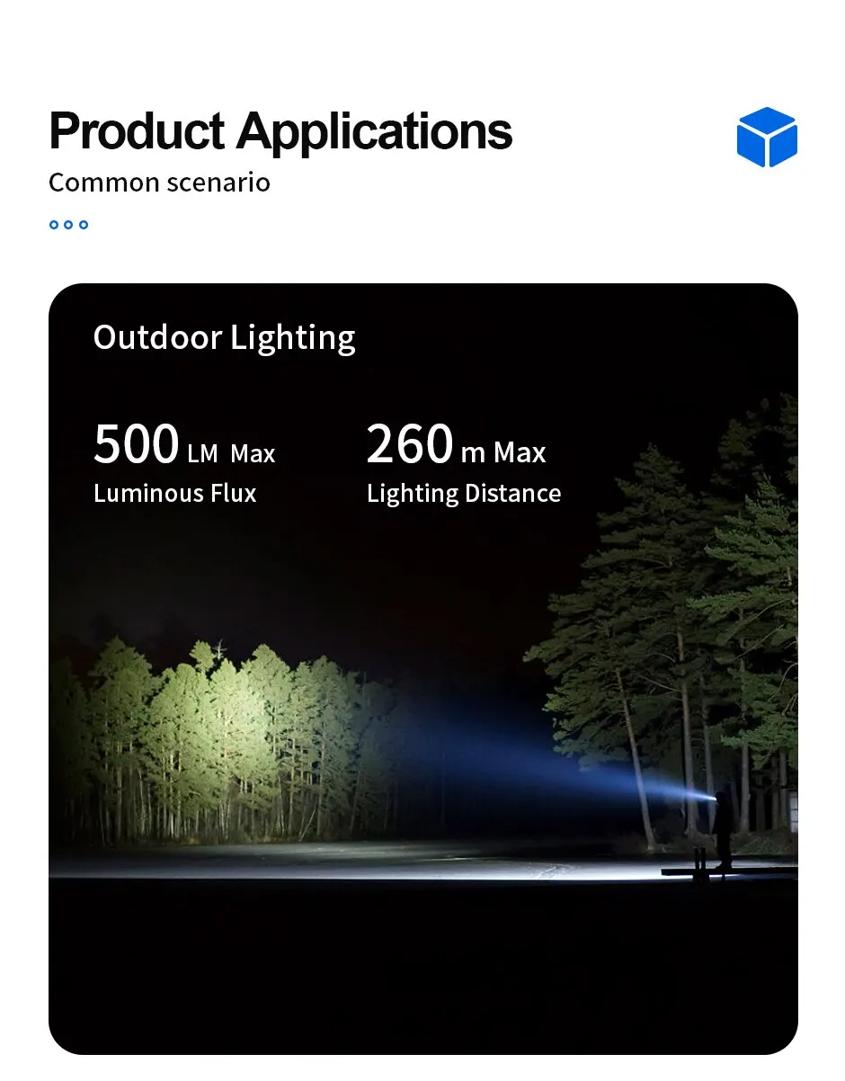 • Easy to Use :Featuring an intuitive design, this flashlight is easy to operate, making it suitable for both experienced outdoor enthusiasts and beginners.