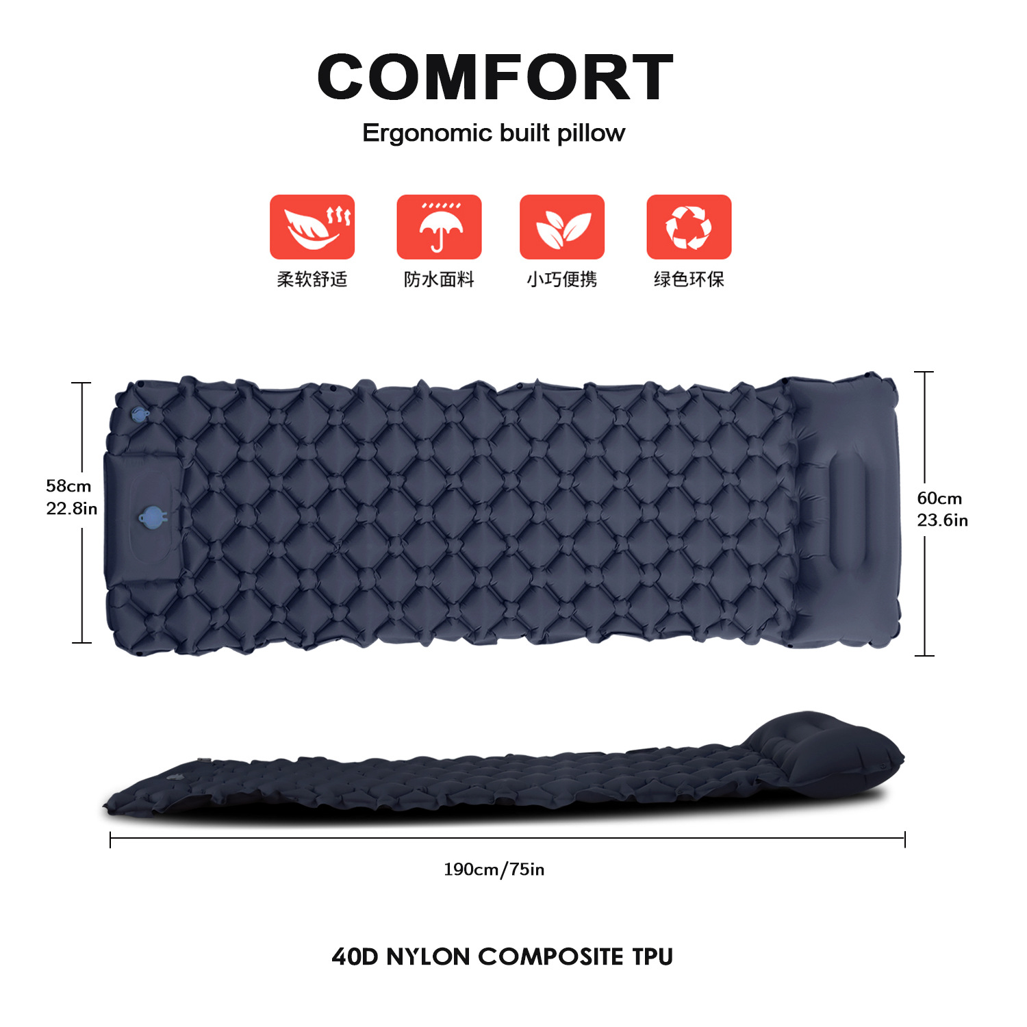 2.In order to have a better experience of the product, we will upgrade the built-in air pump of the sleeping pad. The inflatable pressure of some sleeping pads is inconsistent with the picture. Please rest assured that it will be better.