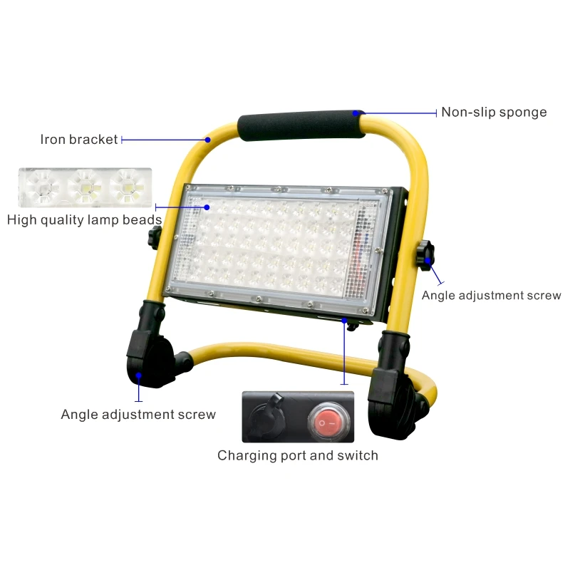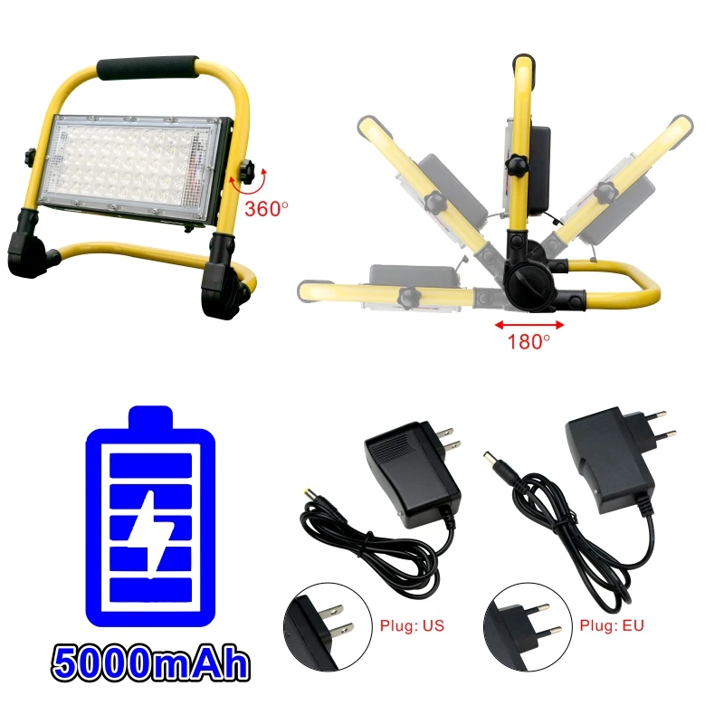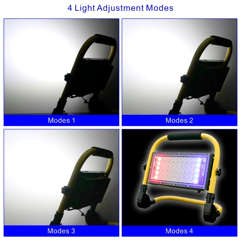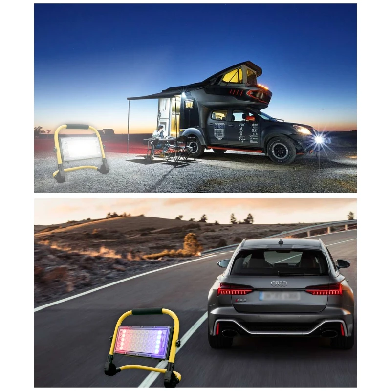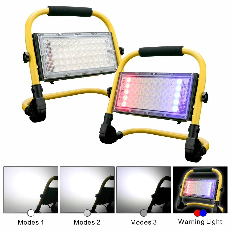Portable Spotlight 50W LED Outdoor Lighting Floodlight 5000mAh Emergency Rechargeable Camping Lamp 4Modes Warning Flood Light