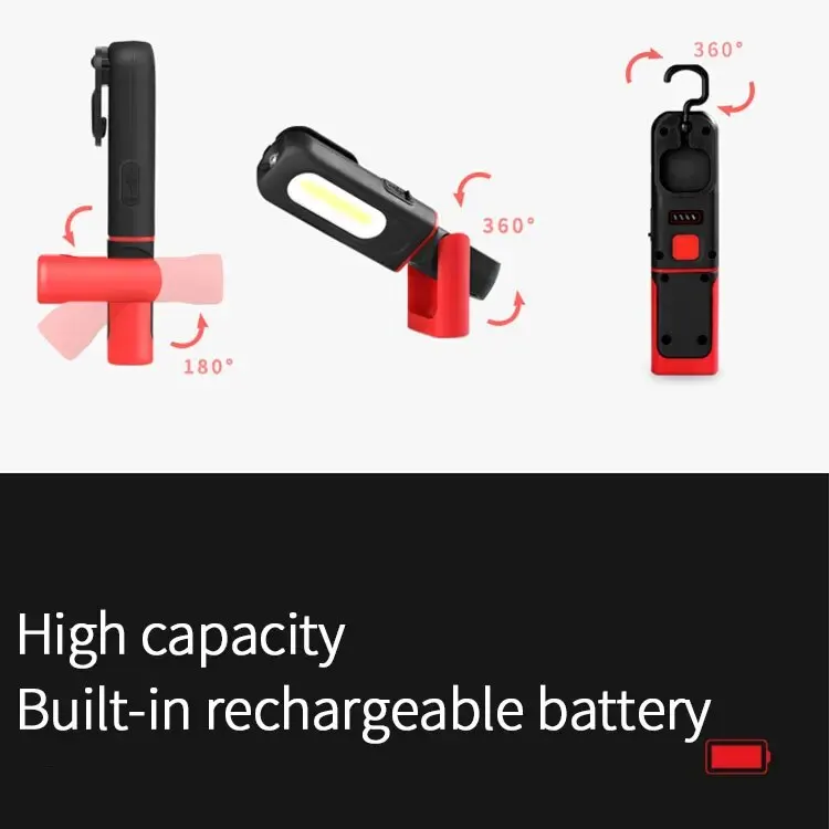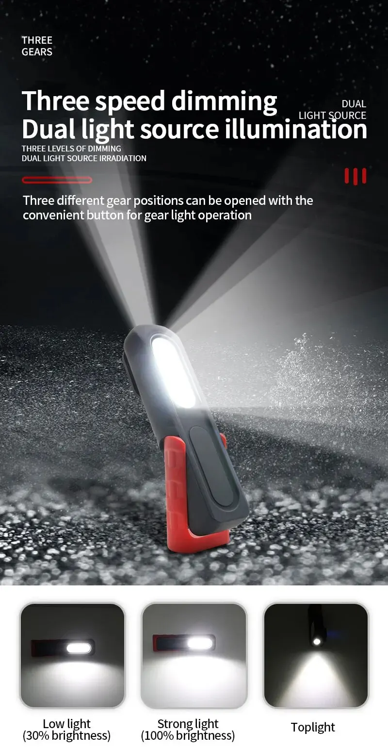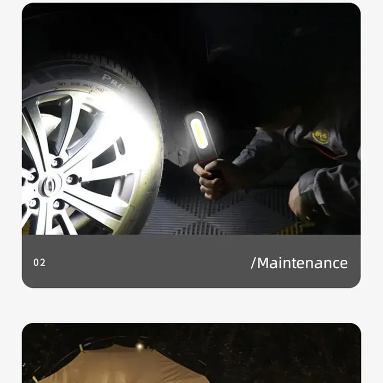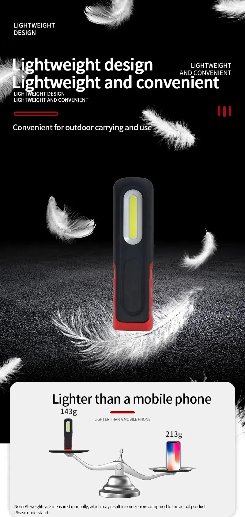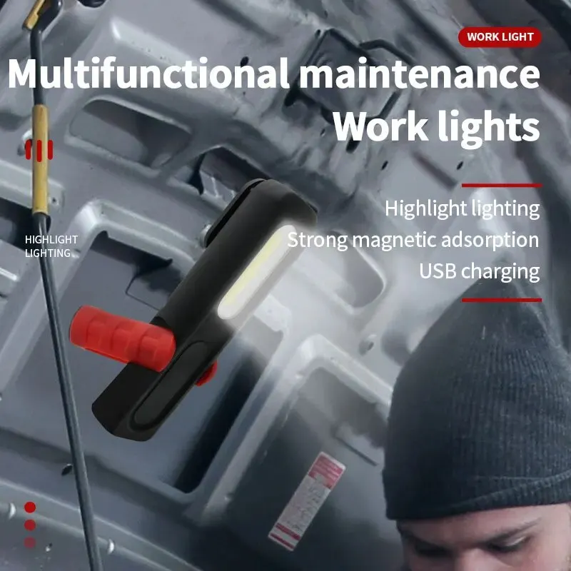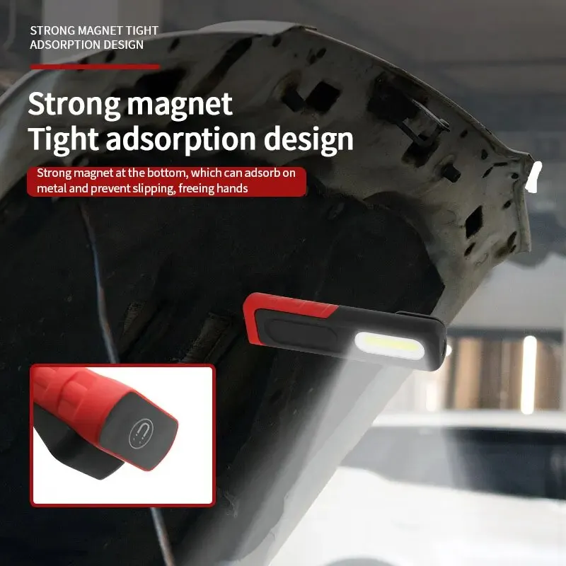 Portable USB Rechargeable Work Light Magnetic COB LED Flashlight Hanging Lamp with Built-in Battery Camping Torch