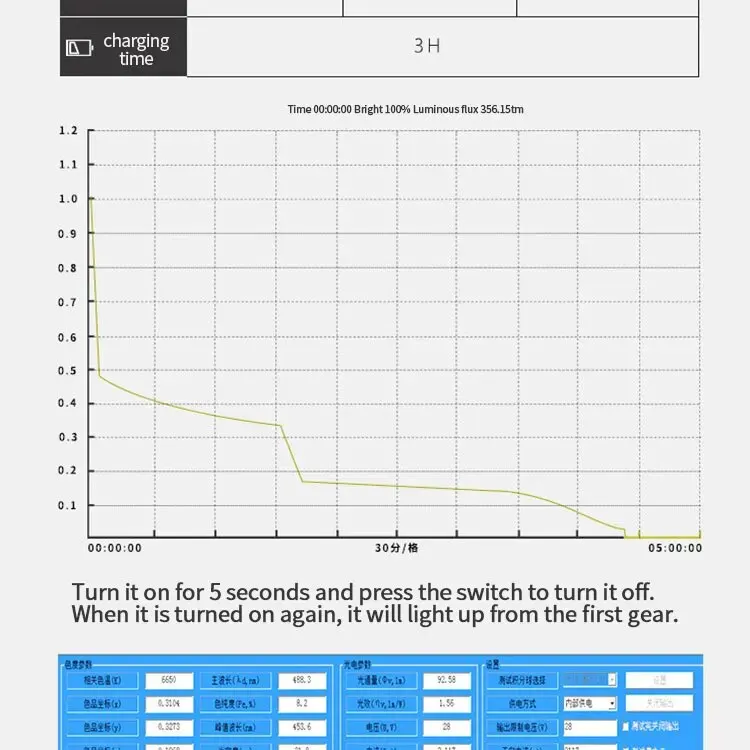Luminousflux :110LM(30% white light), 350M (100% white light), 80LM(100%headlights)