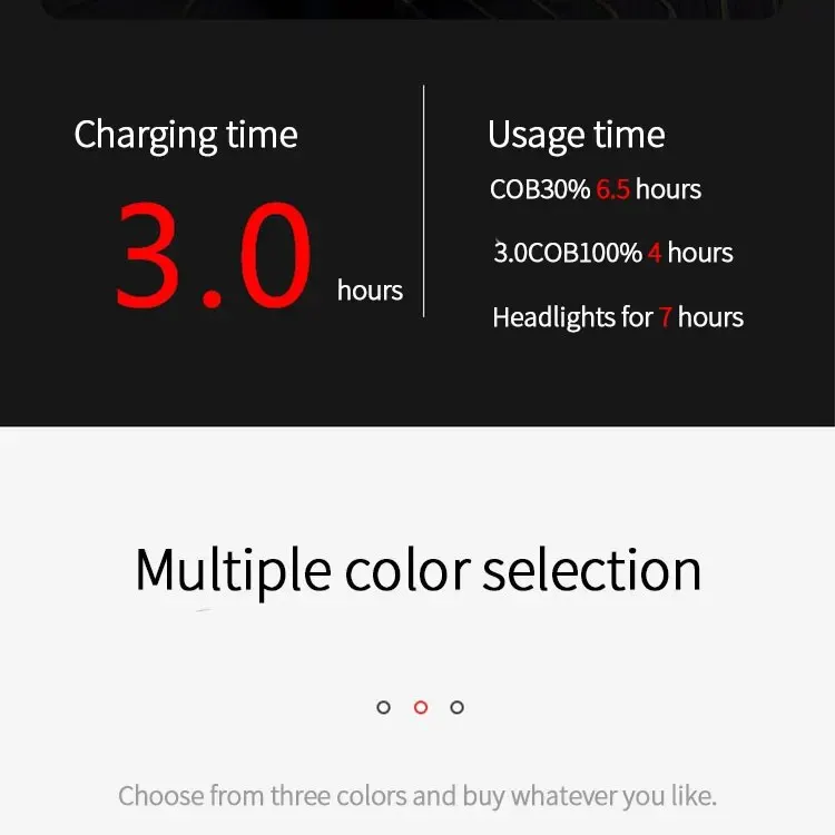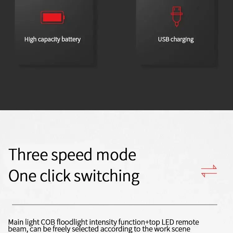 Lighting mode:30% COB brightness 100% COB brightness top LED