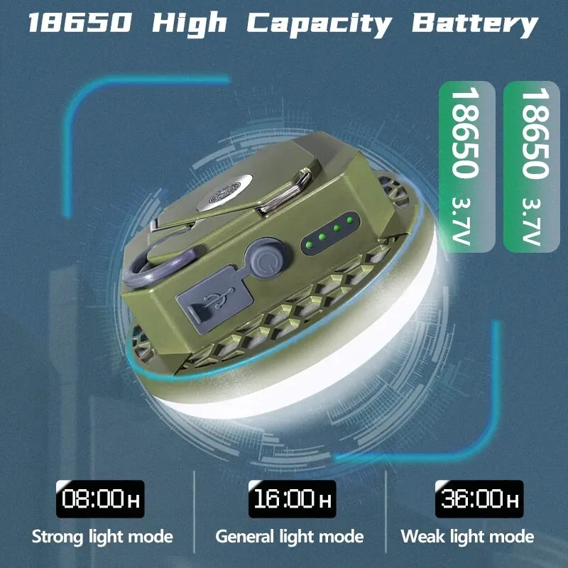• Rechargeable Battery Powered :This camping light is powered by a rechargeable battery, ensuring you always have light in the dark. It’s perfect for outdoor activities like camping, fishing, and mountaineering.