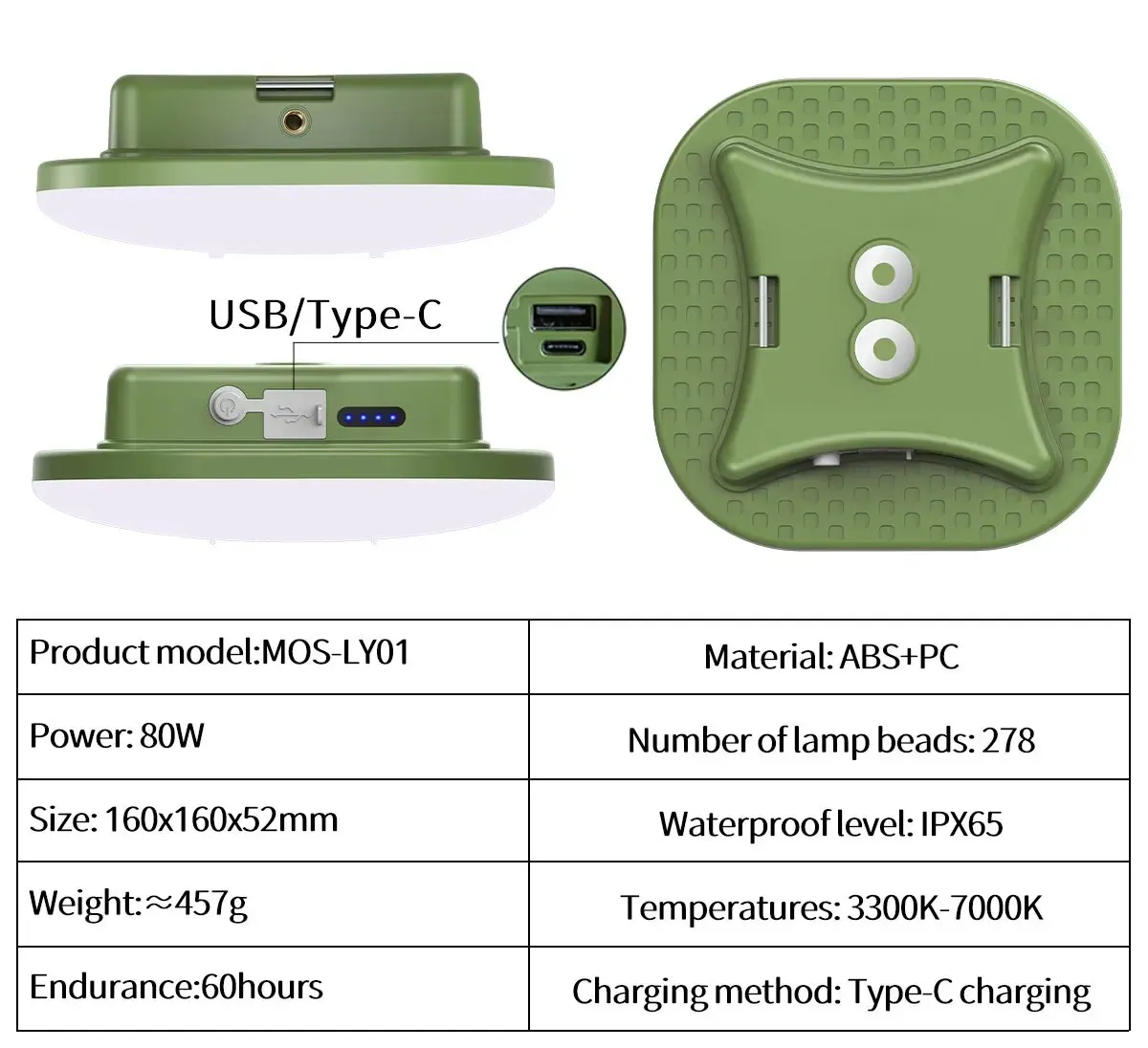• USB Type-C Charging :With USB Type-C charging, this lantern can be easily powered up using a variety of power sources, including laptops, power banks, or wall sockets.
