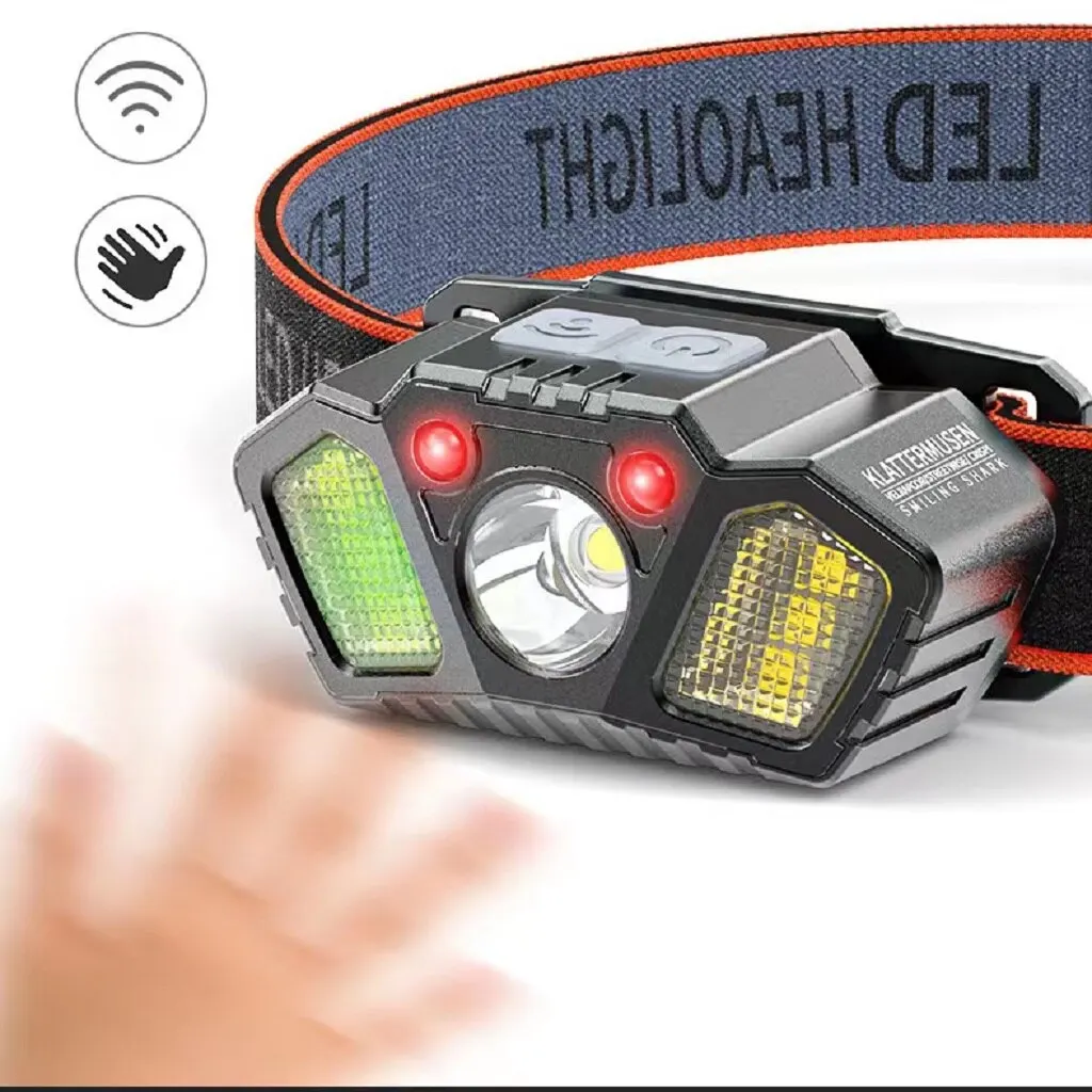 Rechargeable Headlamp 5Modes XPE COB Adjust with Red Caution Light Gesture Control LED Head Lamp For Fishing Camping Hiking