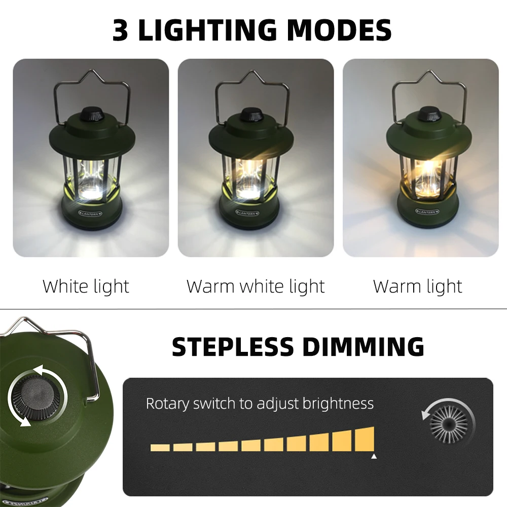Rechargeable Portable Lanterns Camping Light Tent Light Flashlight Stepless Dimming Tent Travel Outdoor Lighting Equipment