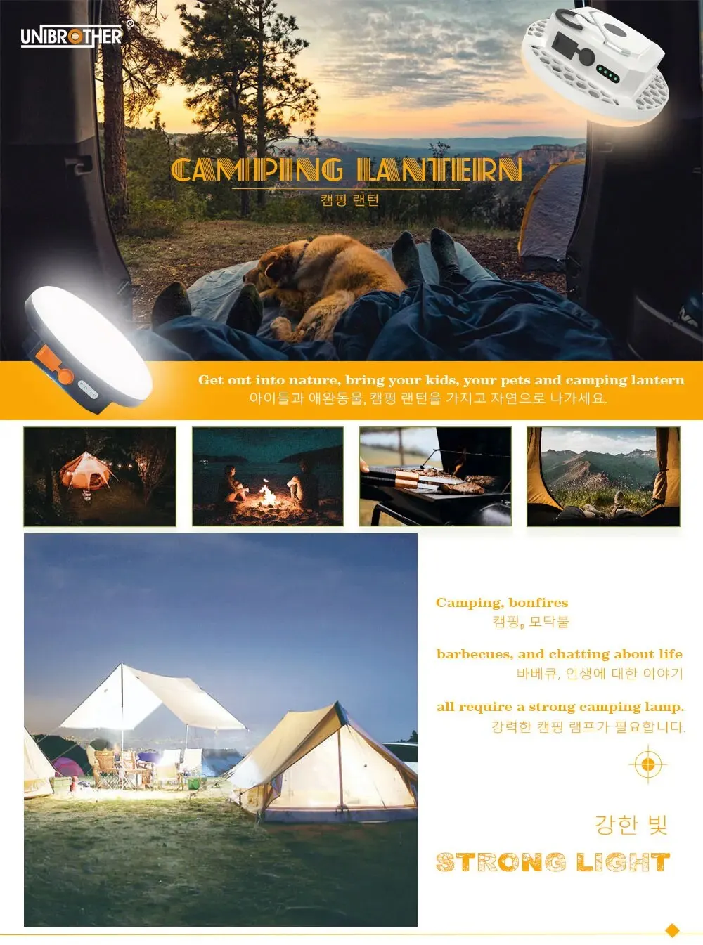 Name: unibread portable led camping light USB rechargeable tent light emergency light