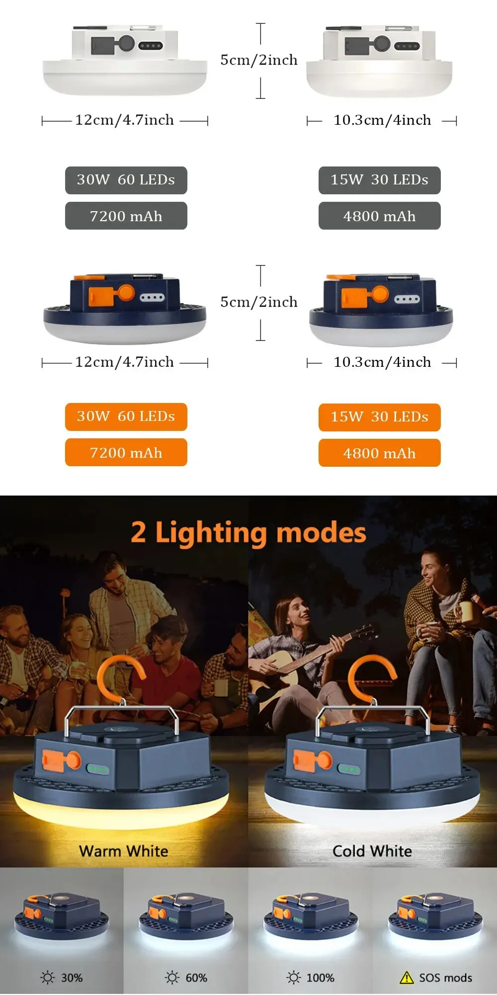 7. Lighting mode: four levels adjustable (super strong / strong light / general light / long press SOS),