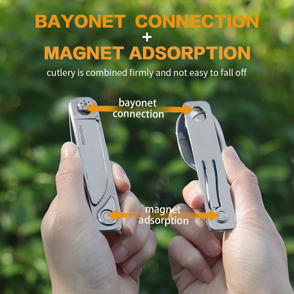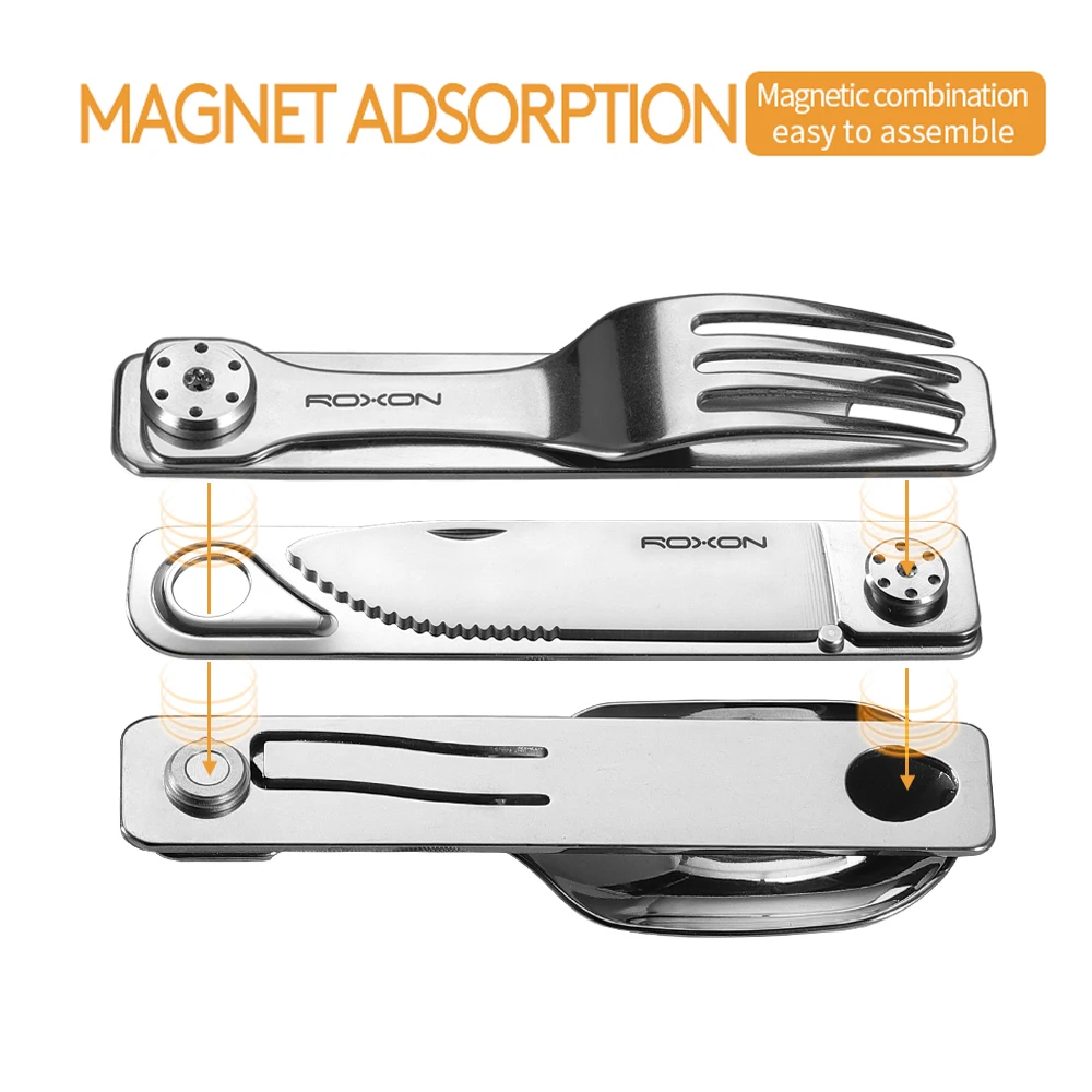ROXON 3 IN 1 Camping Cutlery Set Knife Fork Spoon Stainless Steel Portable and Detachable