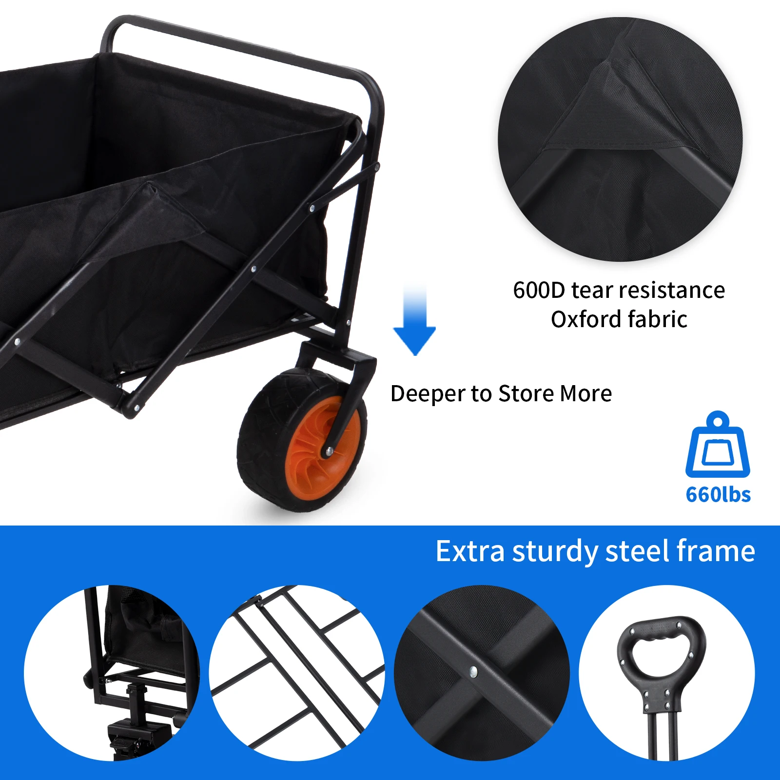Practical Carry Cart: Made of aluminum material, the fabric is made of synthetic fibers, and can withstand a weight of 330 lbs (150 kg).