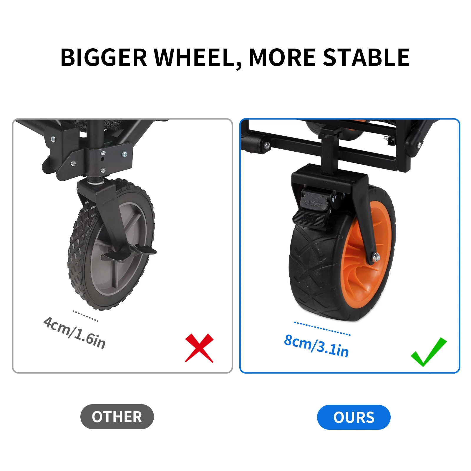 Large Capacity:with a maximum capacity of 29.4 gal (150 L) ,The tent, canopy, tables and chairs, and cooking utensils can be pulled away in a car, reducing the number of trips to and from picking up things.