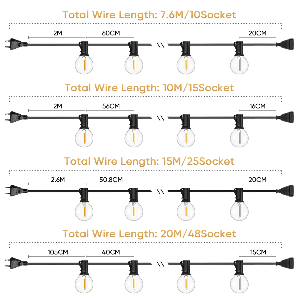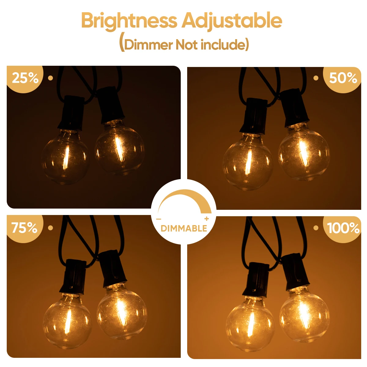 Dimmable & Lightweight: G40 outdoor lights string is compatible with dimmer to diming the brightness and create a warm ambiance to relax your mood. Made by flexible and durable wire, you can put this outdoor lights at anywhere.