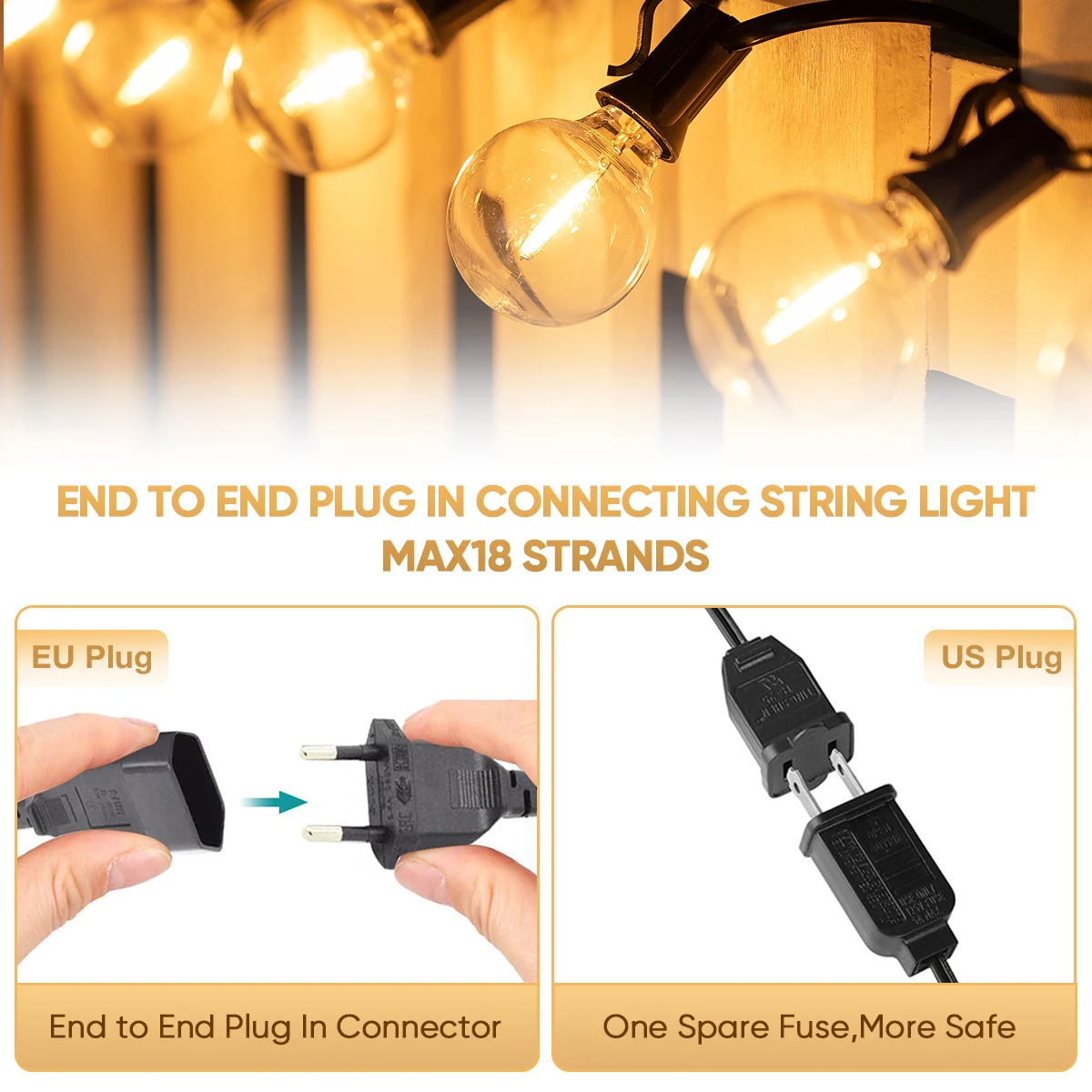 Longer Lifespan:This electric plug in outdoor lights for patio save over 90% energy over incandescent bulbs, which save your electric bill. patio lights outdoor waterproof with 25,000 hours long lifespan could reduce maintenance costs on changing traditional bulbs frequently.