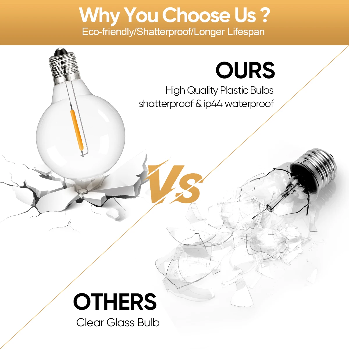 Shatterproof & Waterproof: This G40 globe outdoor string lights shatterproof is also know as cafe lights or bistro lights, it built with weatherproof technology, which can withstand extreme temperatures, rain, wind, and damp climates, durable for year round outdoor use.