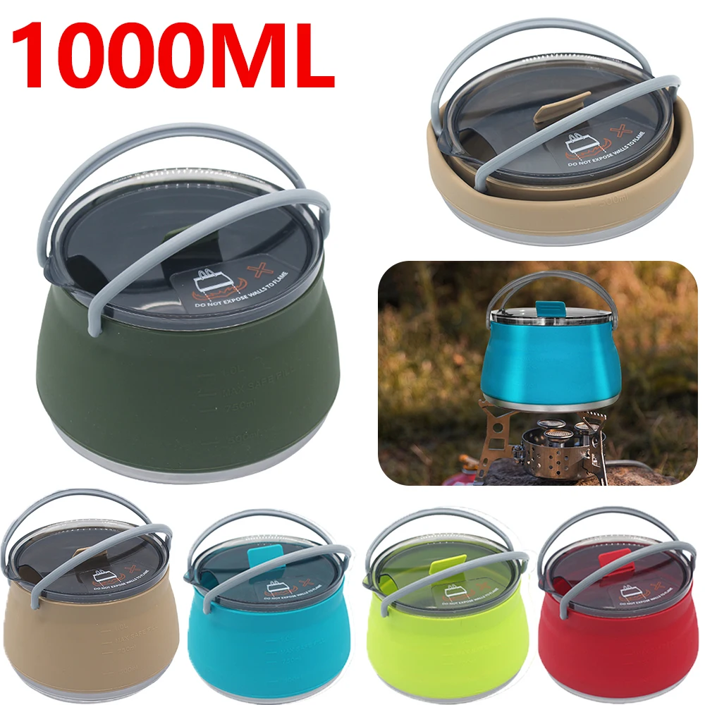 Silicone Folding Kettle Camping Teapot 1L Portable Coffee Tea Cooker Collapsible Boiling Water Pot with Handle Camping Supplies